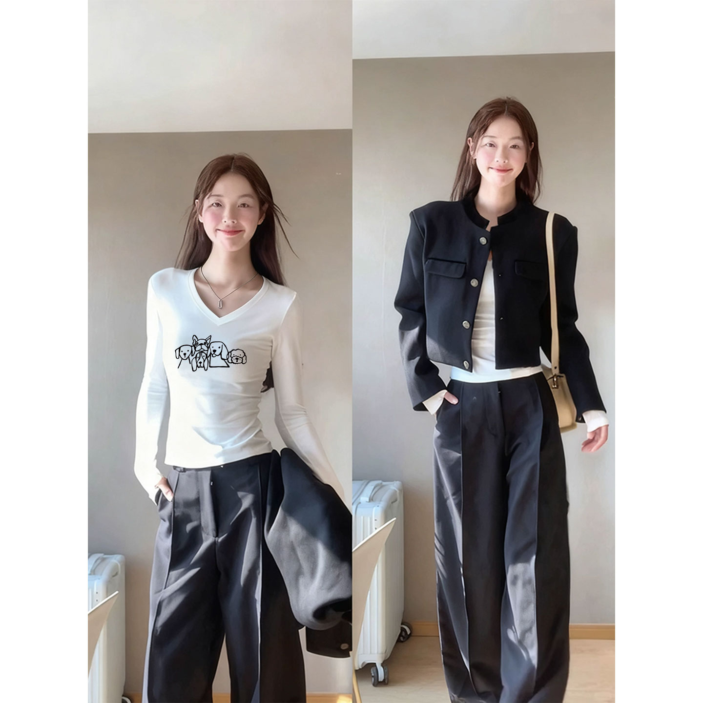中长款 大码 纯棉宽松秋冬圆领打底衫 T恤女装 白色内搭上衣长袖