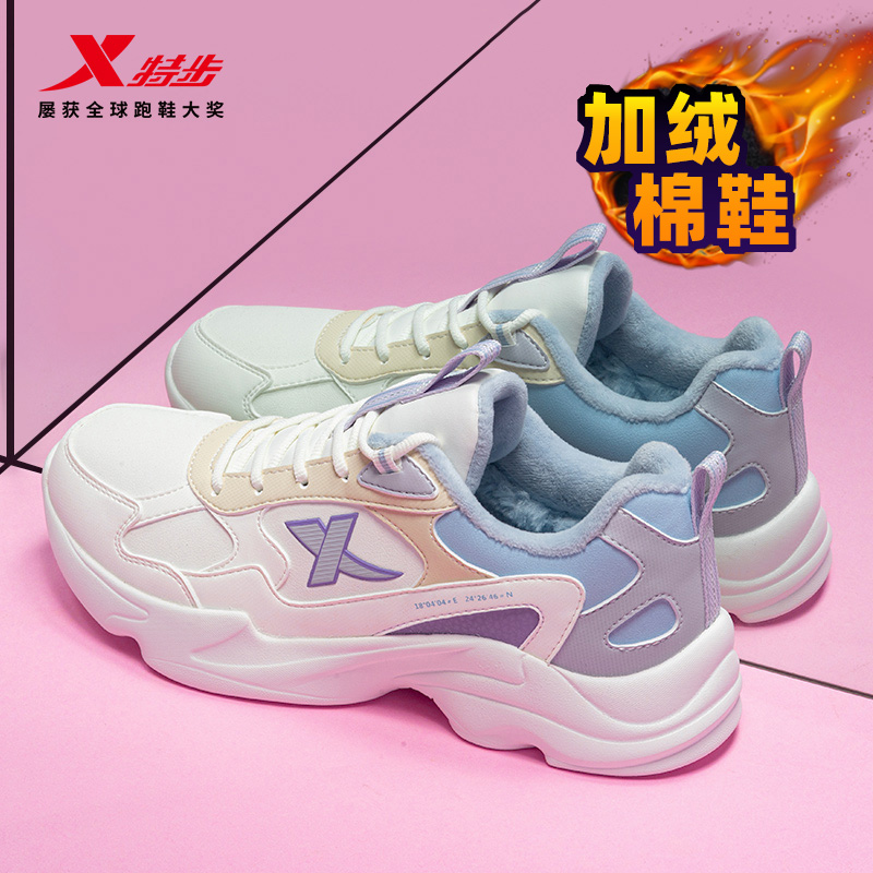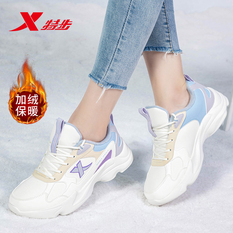 皮面防泼水爸爸减震网面休闲鞋 特步跑步鞋 黑色运动鞋 秋冬新款 男鞋