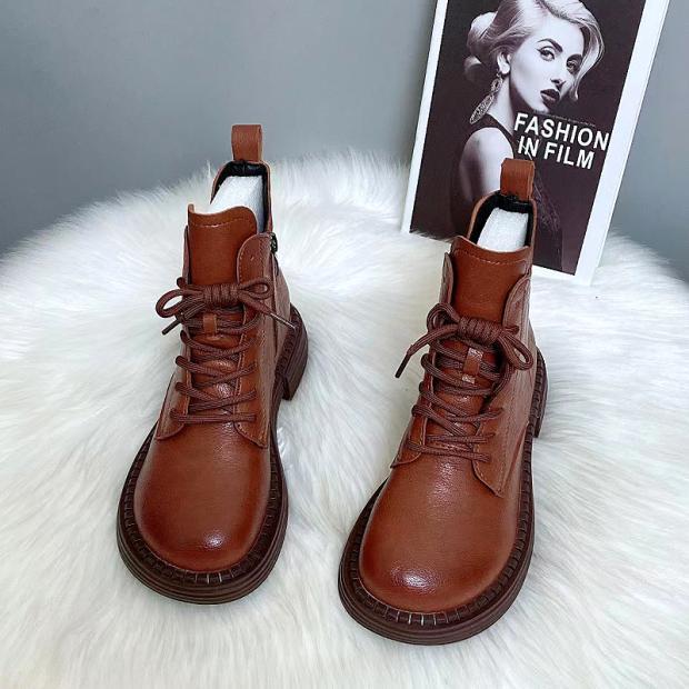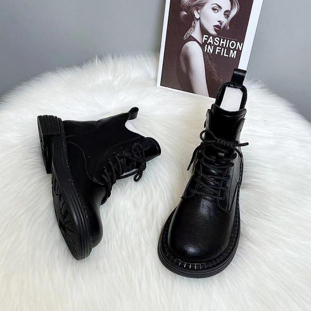 风加绒厚底休闲短靴子1018u 新款 时尚 芒果头马丁靴女2025秋冬季