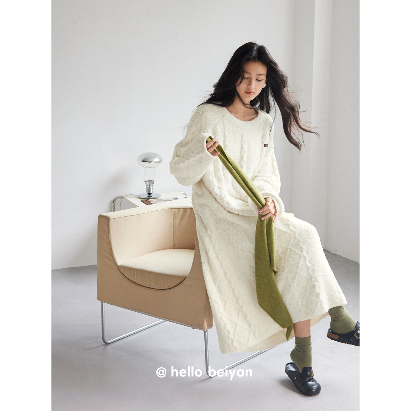 保暖家居服D 睡衣套装 MIIOW 猫人睡裙女秋冬宽松半边绒加绒加厚款