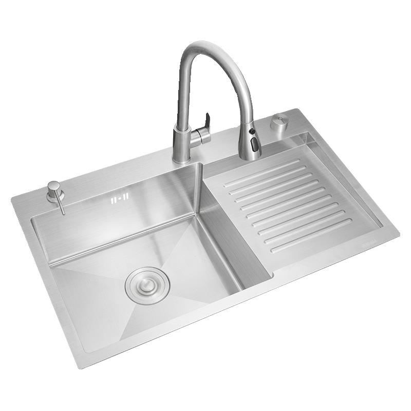 悍高厨房纳米石纹水槽手工单槽304不锈钢洗菜盆洗碗盆大单盆套餐