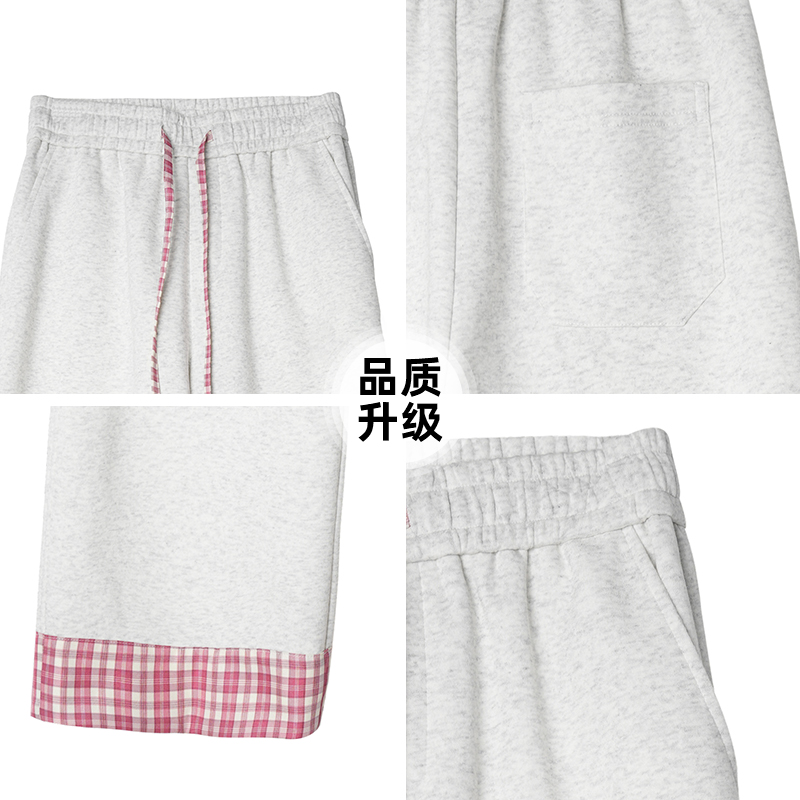 情侣 拼接格子爱心针织宽松百搭抽绳直筒休闲裤 查尔斯桃心秋季 新款