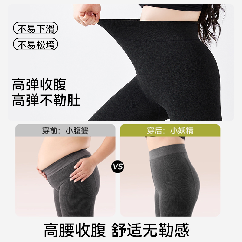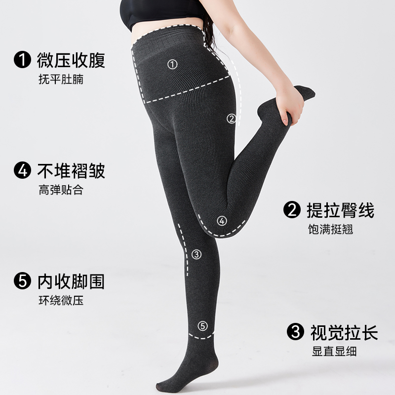 加绒加厚胖mm200斤外穿显瘦不掉档打底裤 袜女秋冬季 灰色连裤 大码