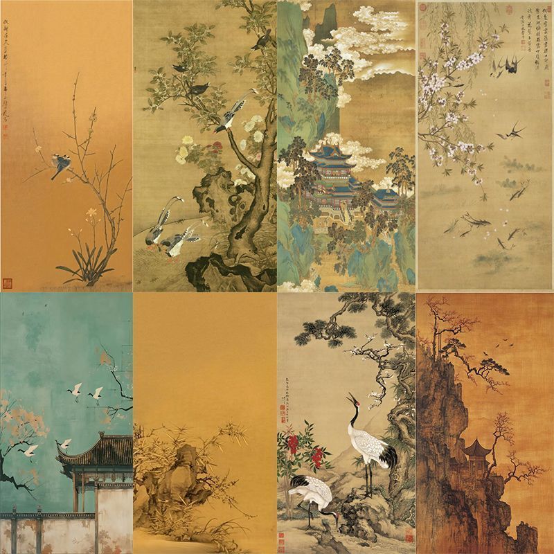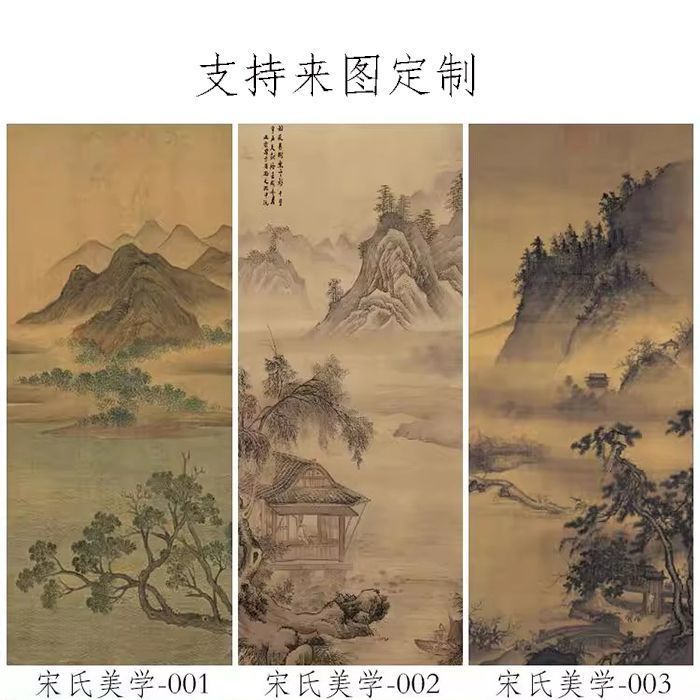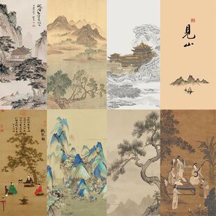 新中式 美学中古风定制无缝墙布壁画 古典休园图富春山居图腰线宋式