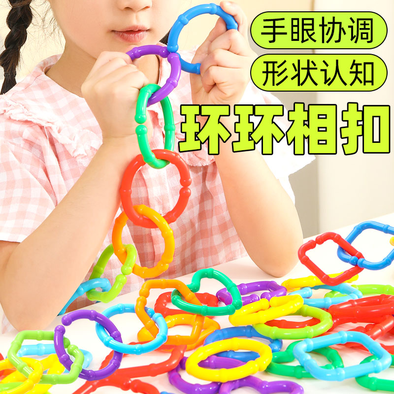 儿童蒙氏早教益智玩具宝宝塑料1形状配对链条环扣几何扣环积木2岁