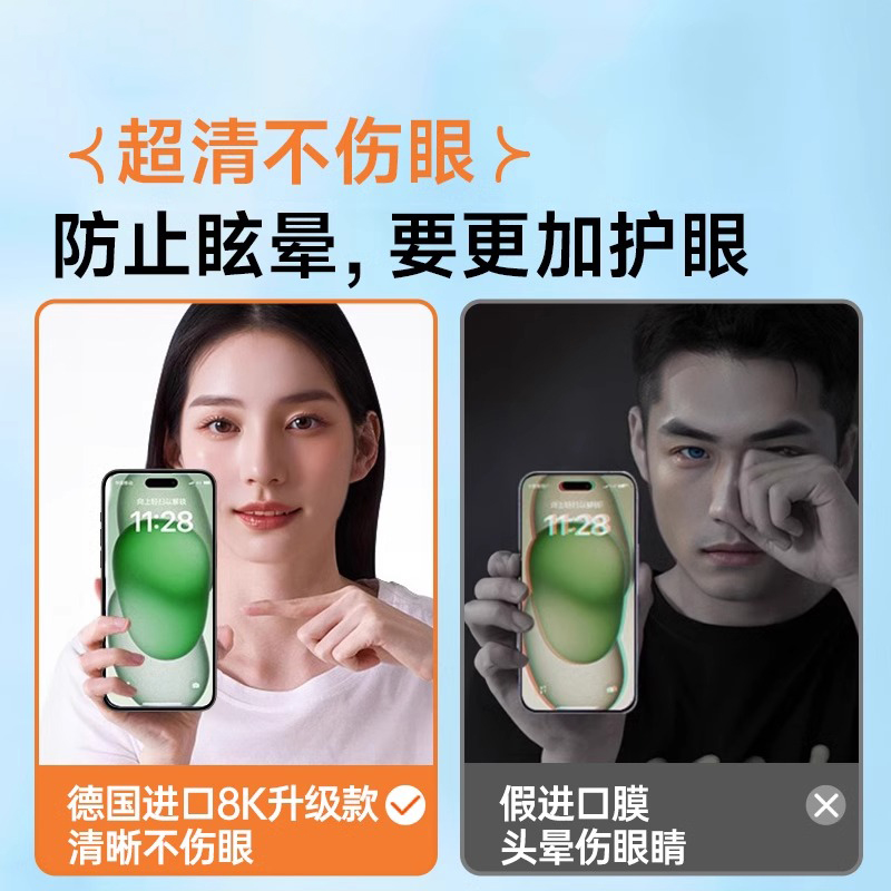 新进口AR护眼 11xs全屏x无黑边xr 西泊来适用苹果15promax手机膜iphone16pro钢化膜14plus抗蓝光13贴膜12新款