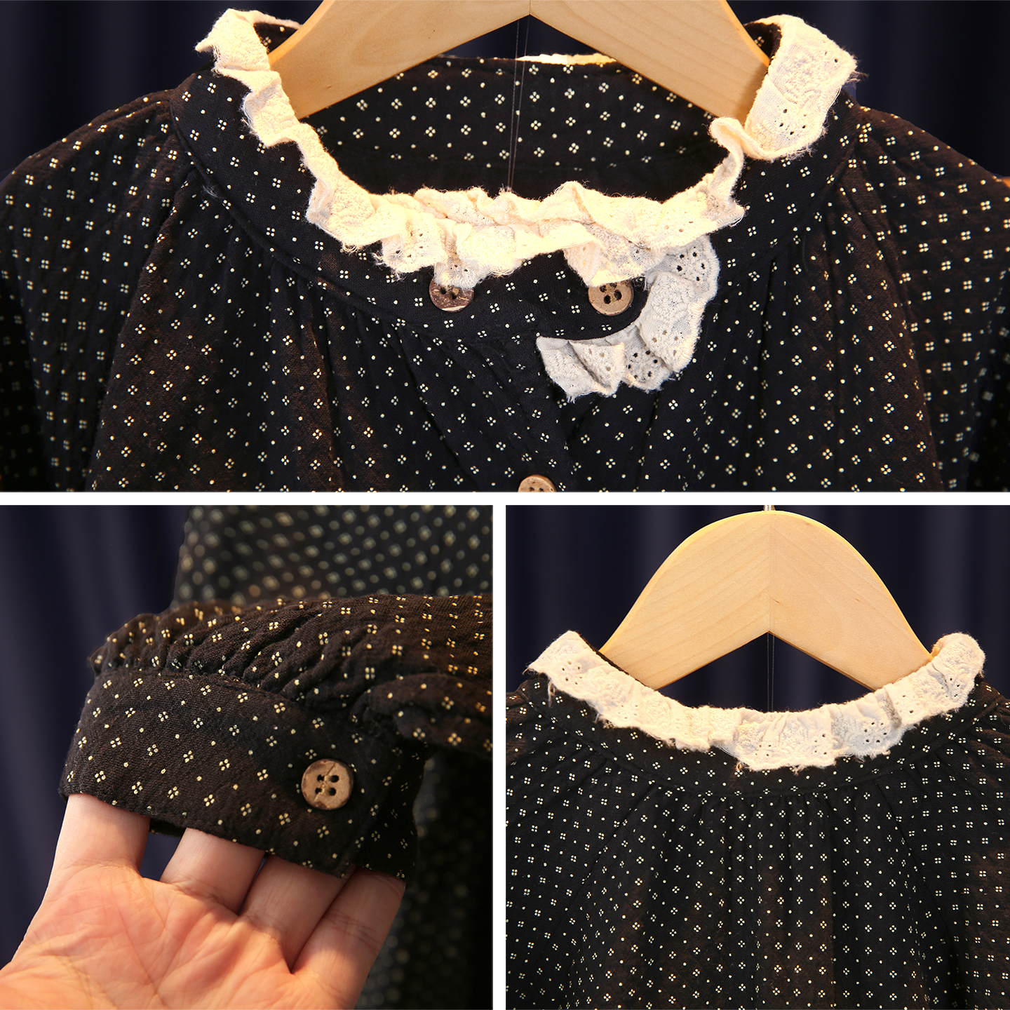 娃娃衫 小女孩好看儿童长袖 宝宝纯棉黑色上衣 纯棉2025新款 女童衬衫