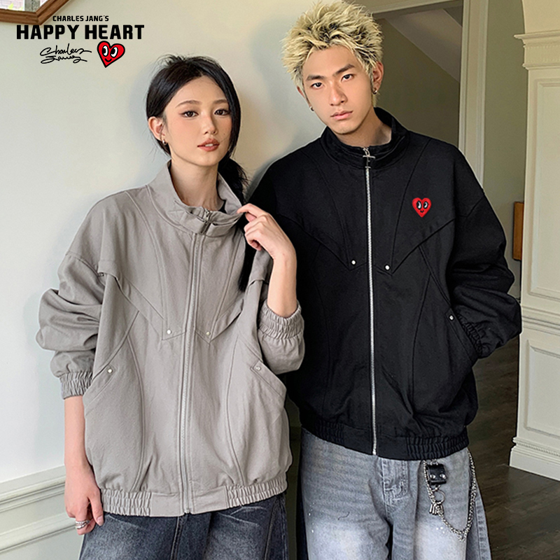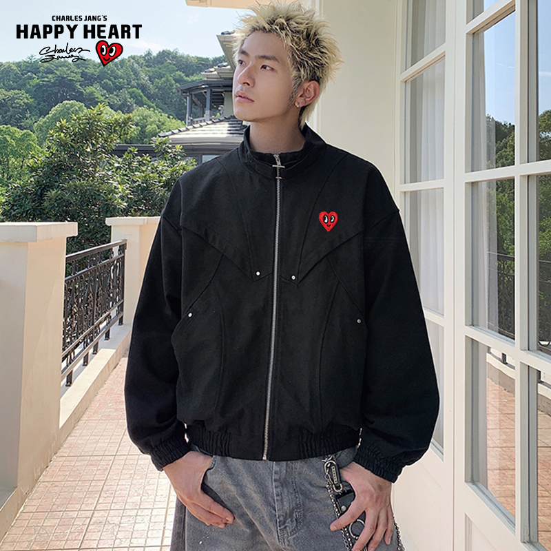 立领教练服外套 新款 查尔斯桃心 纯色cleanfit夹克男双面穿春秋季