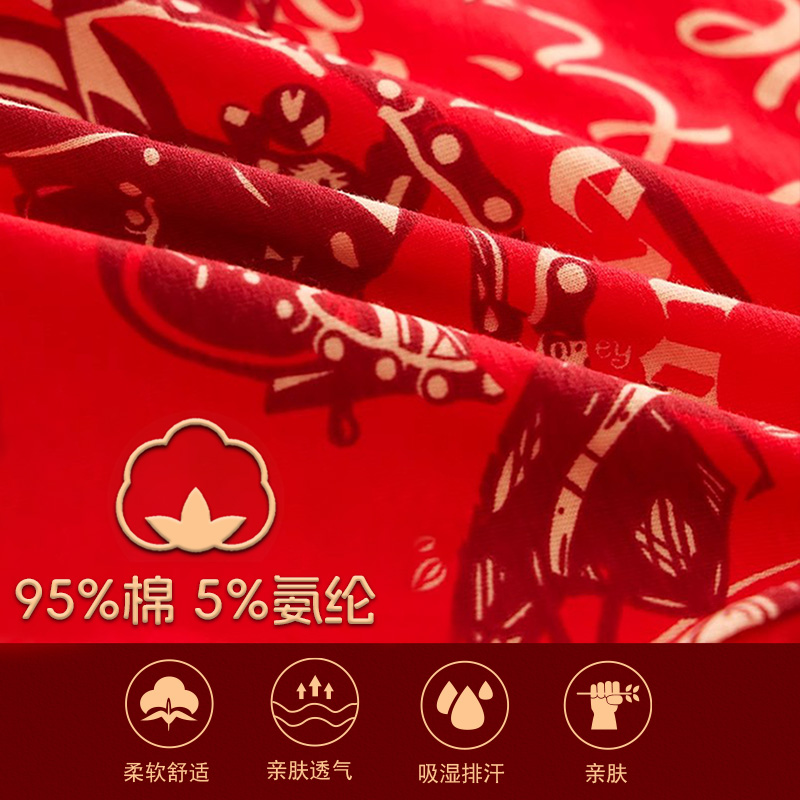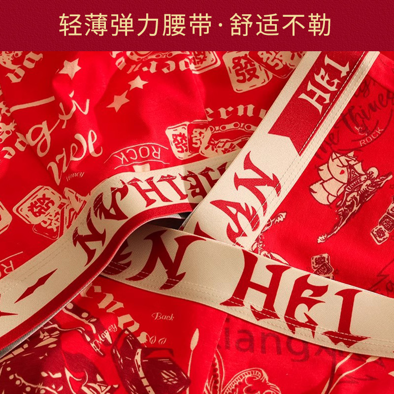 雅鹿2025蛇年内裤 大红色结婚送礼 男本命年纯棉抗菌舒适透气四角裤