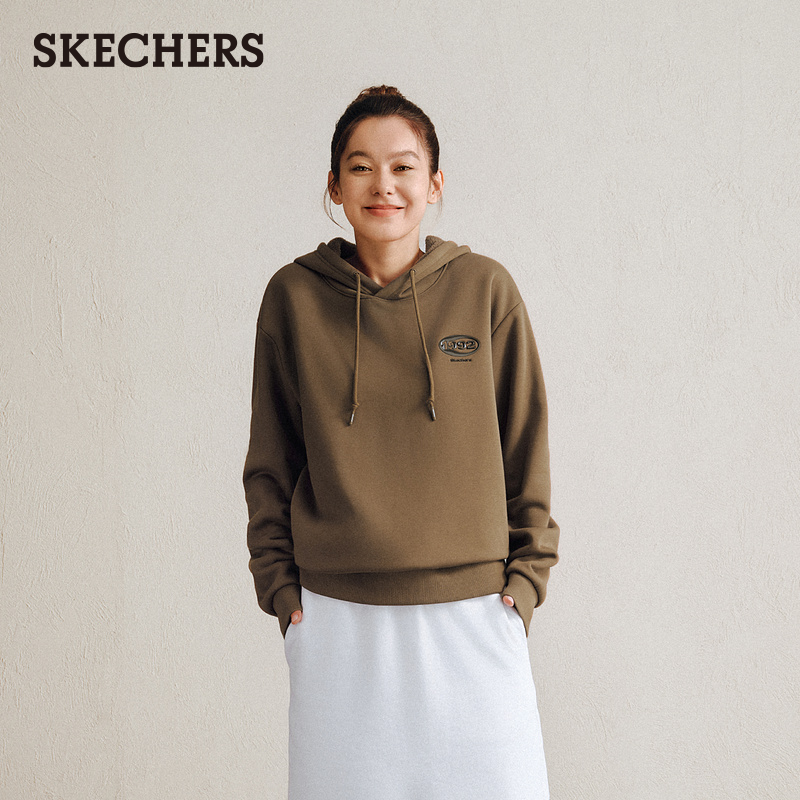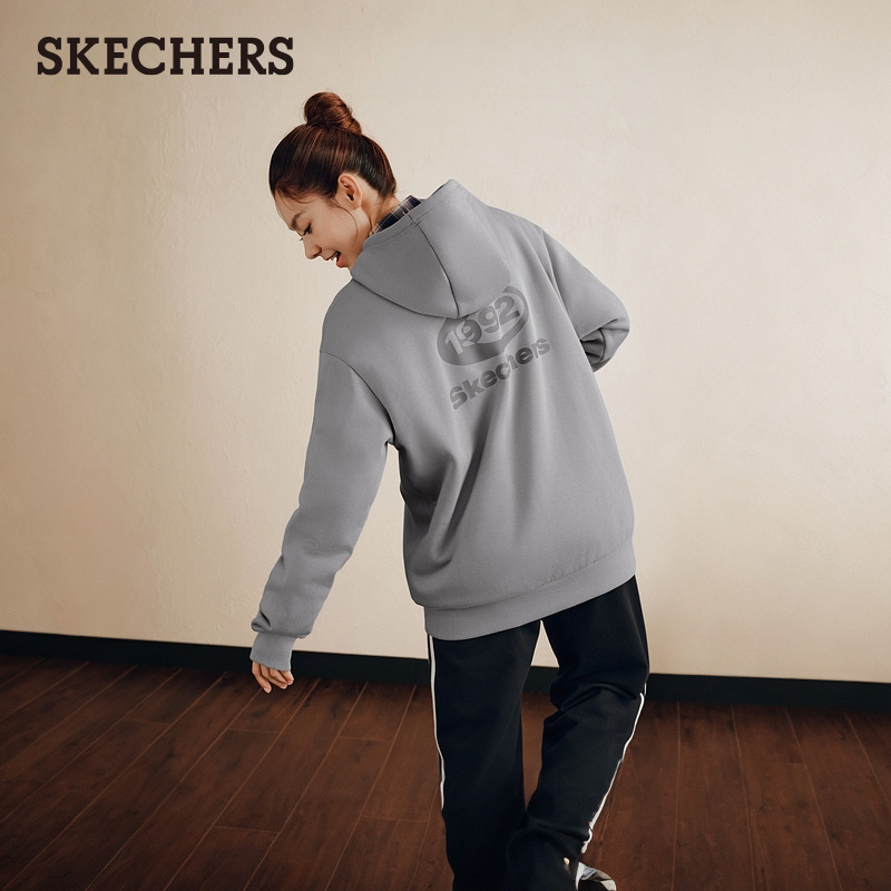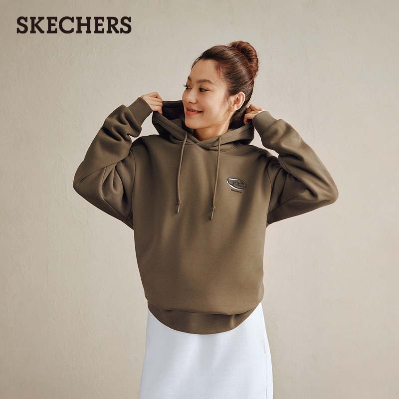 斯凯奇2025秋冬新款 男女宽松连帽卫衣抓绒保暖休闲服加绒潮流上衣