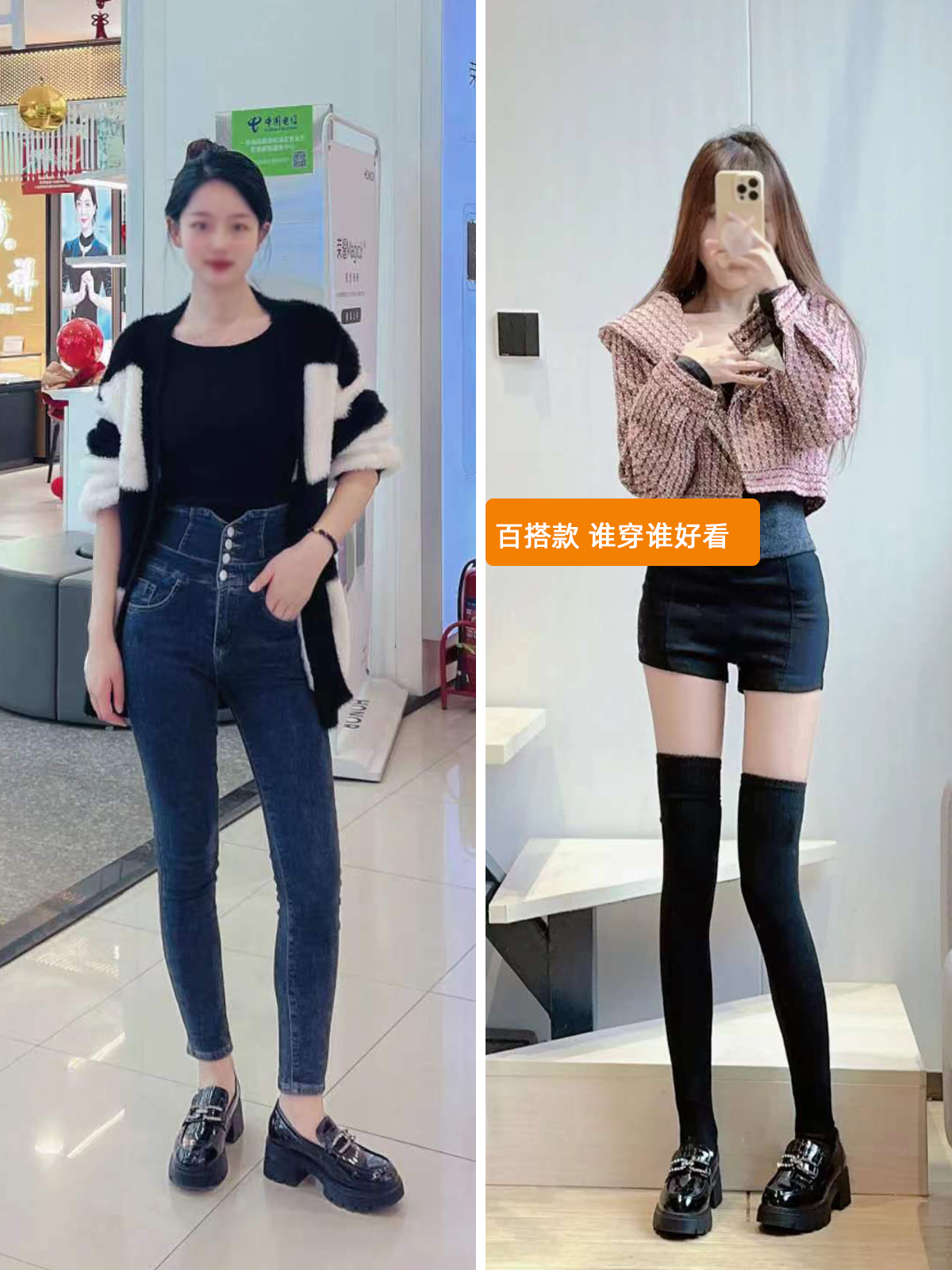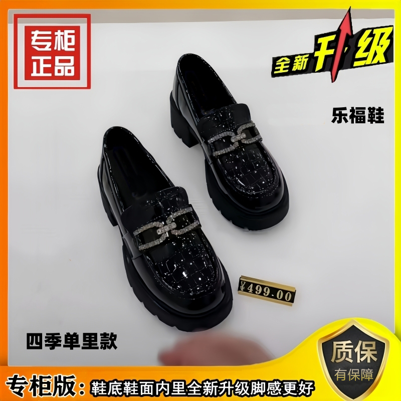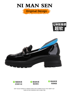 黑色英伦风小皮鞋 真皮款 玛丽珍女鞋 一脚蹬厚配裙子懒人鞋 乐福鞋