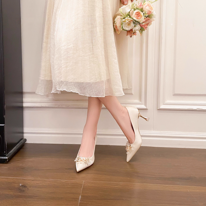 秀禾婚纱两穿浅口单鞋 达芙妮高跟鞋 新娘鞋 气质水钻婚鞋 女2025新款