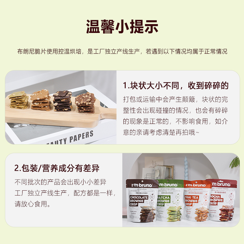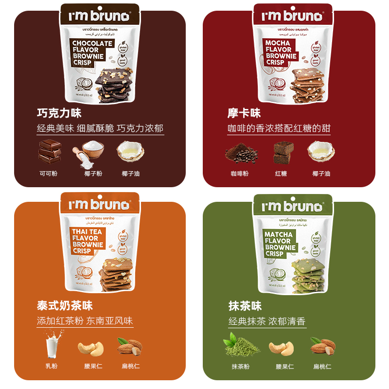 坚果薄脆饼干休闲零食 bruno巧克力布朗尼脆片泰国进口60g袋装