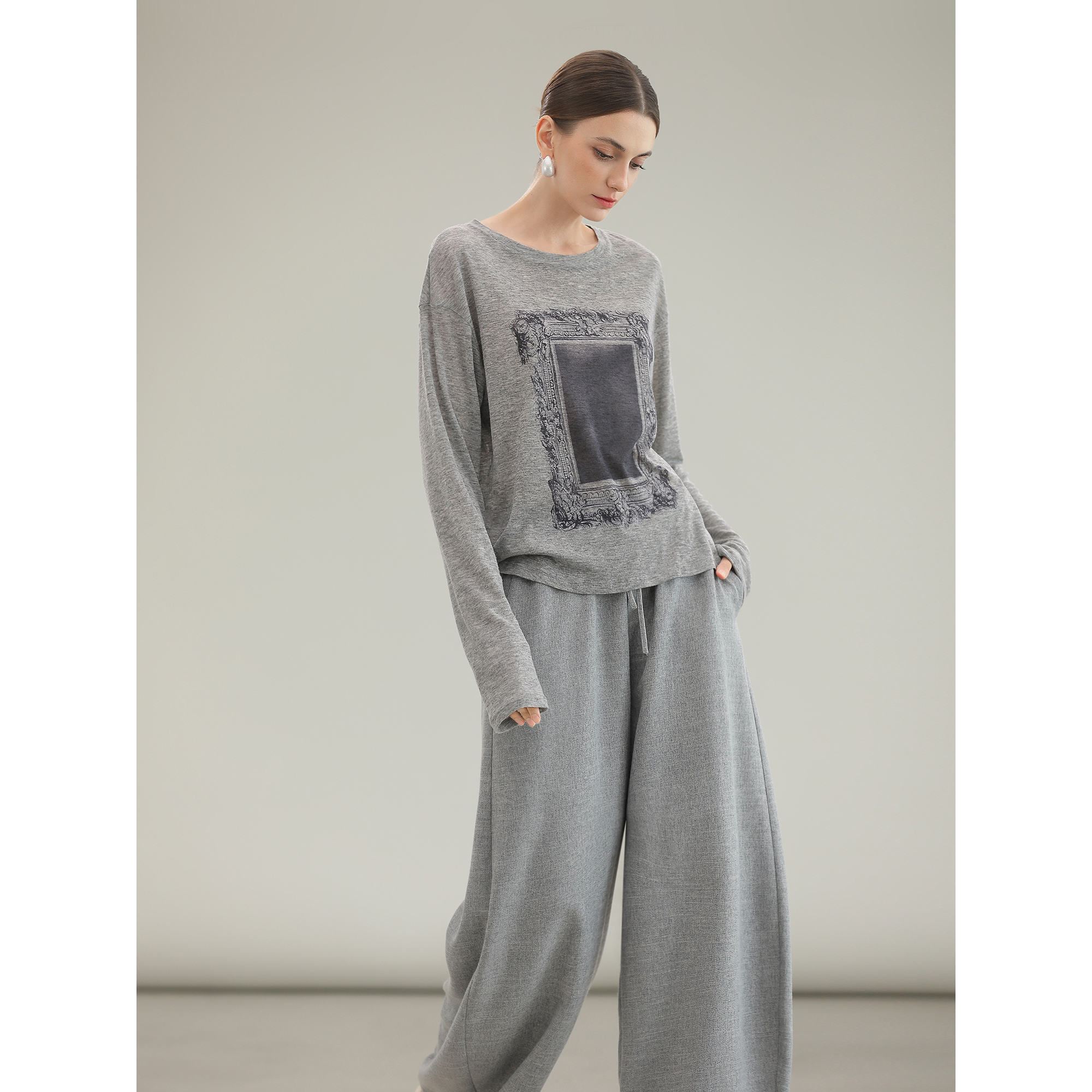 纯棉弹力显瘦 内搭秋冬款 全棉时代女士T恤女针织长袖 上衣打底衫