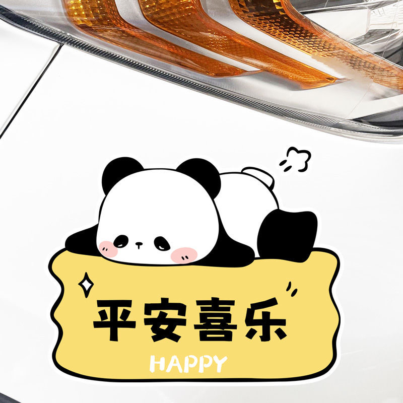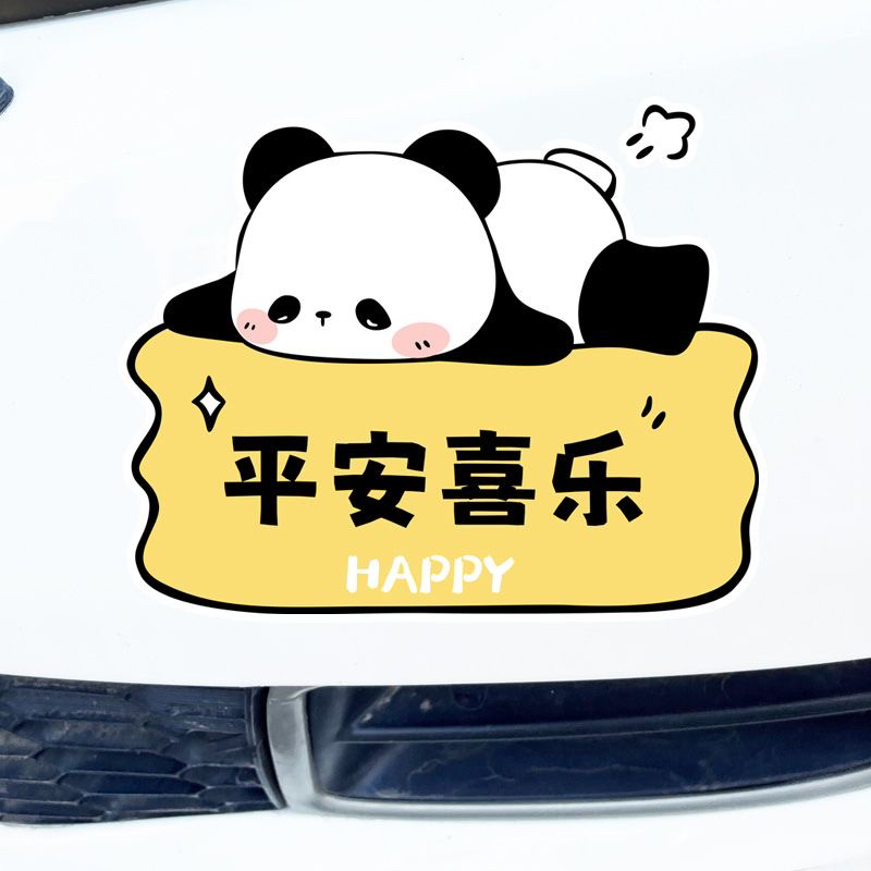 平安喜乐熊猫汽车装 创意划痕遮挡贴 饰后档玻璃贴纸车身电动车个性