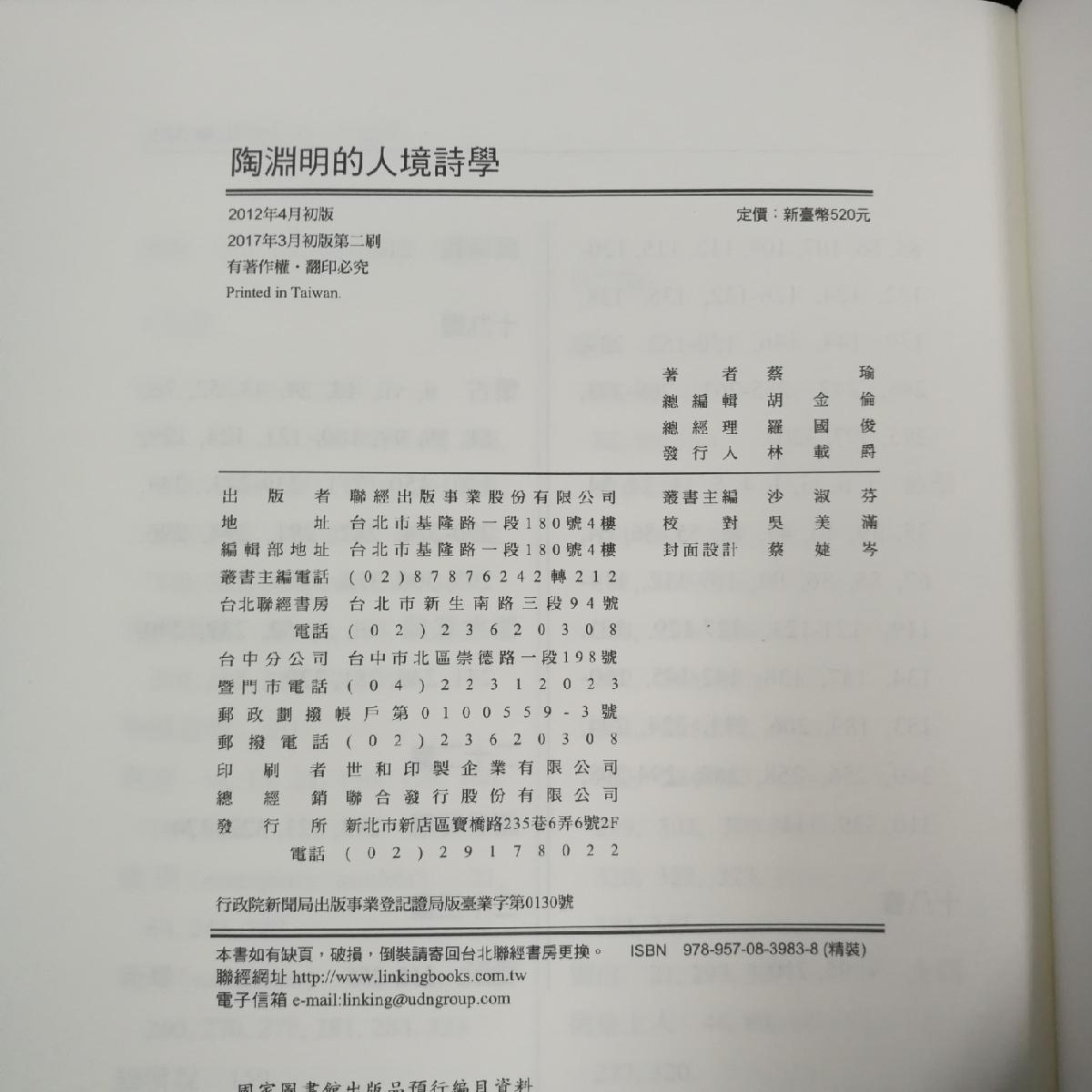 人境詩學 精装 进口书 台湾联经版 孔夫子旧书网官方旗舰店 港台原版 陶淵明 著 现货 蔡瑜