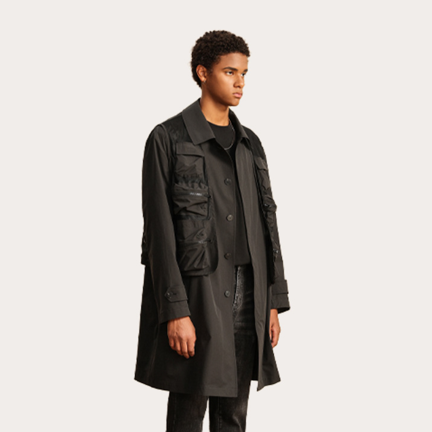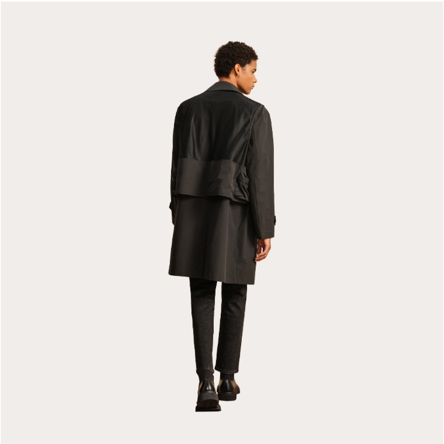 大衣潮 外套高级感宽松猎装 w2x春秋季 高密加捻细斜纹风衣男中长款
