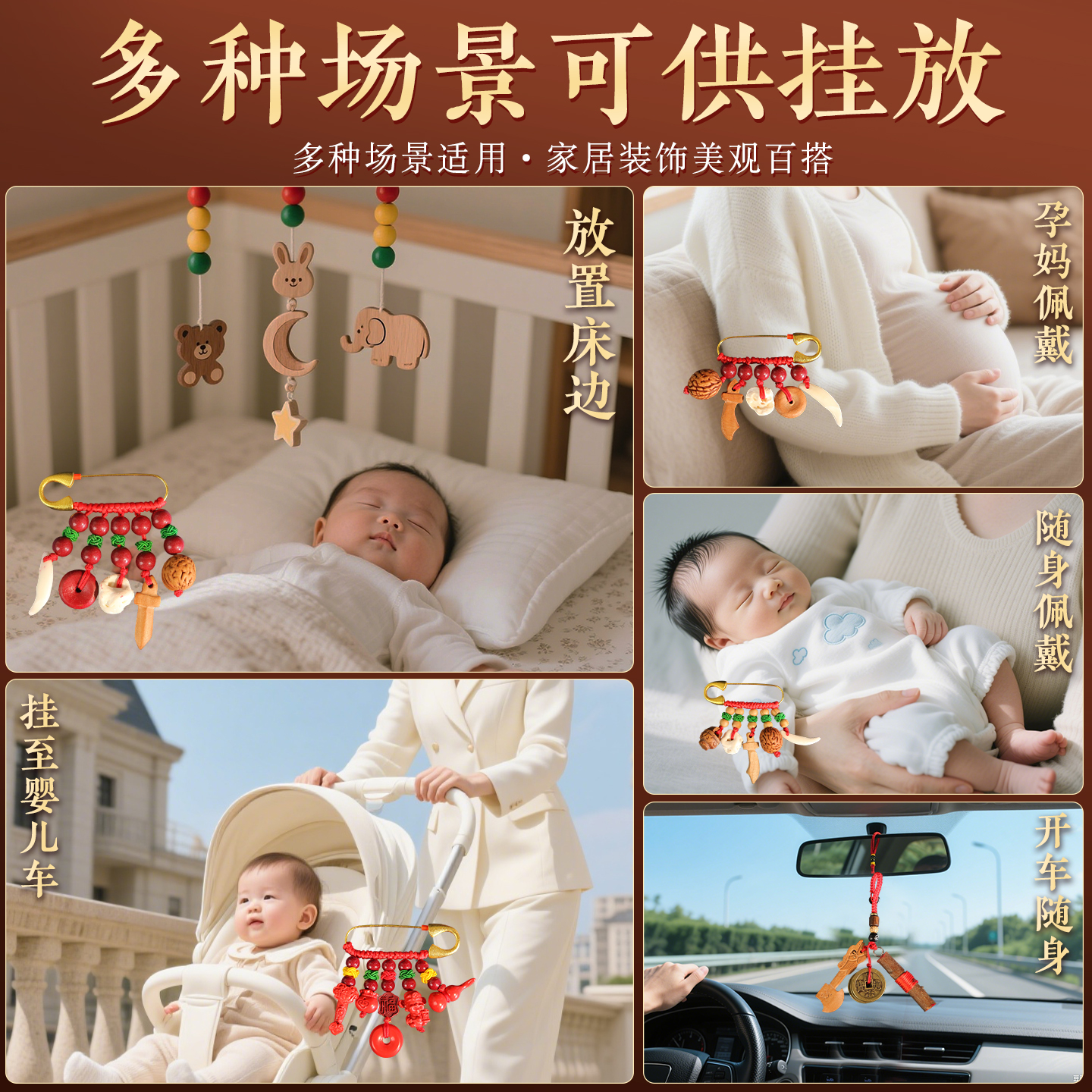 桃木别针婴儿放惊吓桃木剑斧刀狗牙桃核猪惊骨婴儿童宝宝孕妈挂件