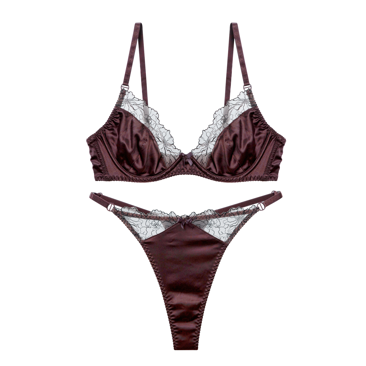 蕾丝刺绣花朵内衣纯欲小清新上托显小文胸套装 豹纹法式 小众法式