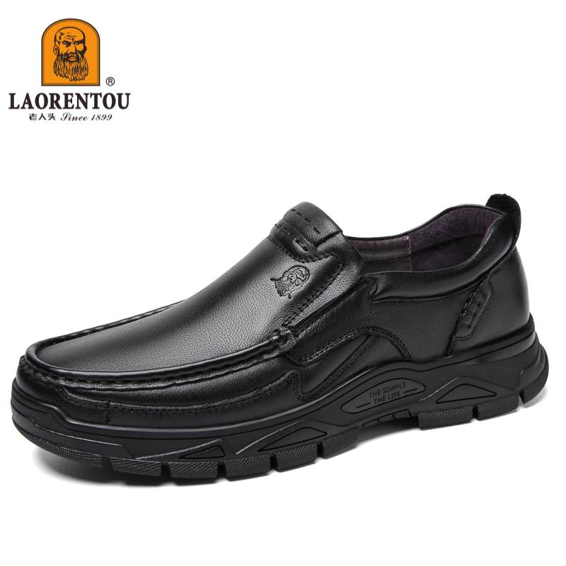 秋季 真皮加绒软底舒适爸爸鞋 皮鞋 中年商务休闲皮鞋 男士 老人头男鞋