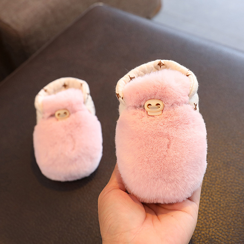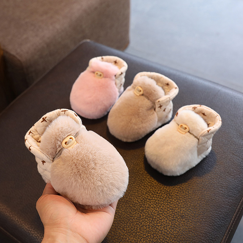 12个月新生儿男女宝宝加绒加厚毛毛鞋 秋冬婴儿鞋 保暖3 软底棉鞋