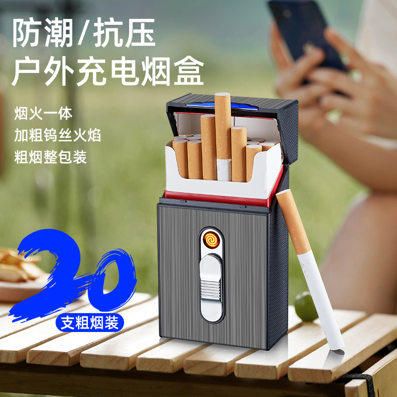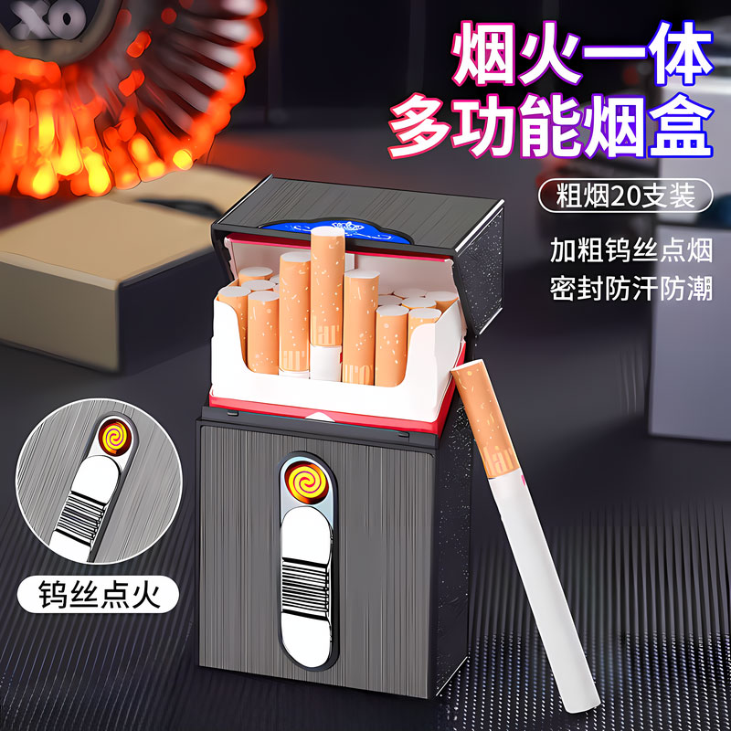 高档细支烟盒弧打火机一体创意个性 便携粗支电金属 铝合金超薄男士