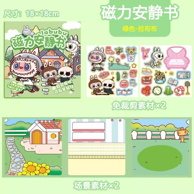labubu拉布布磁力安静书免裁剪女孩磁吸贴儿童diy手工换装 贴纸书