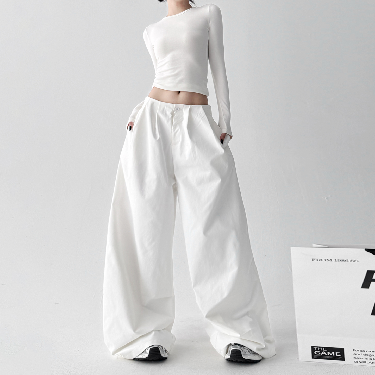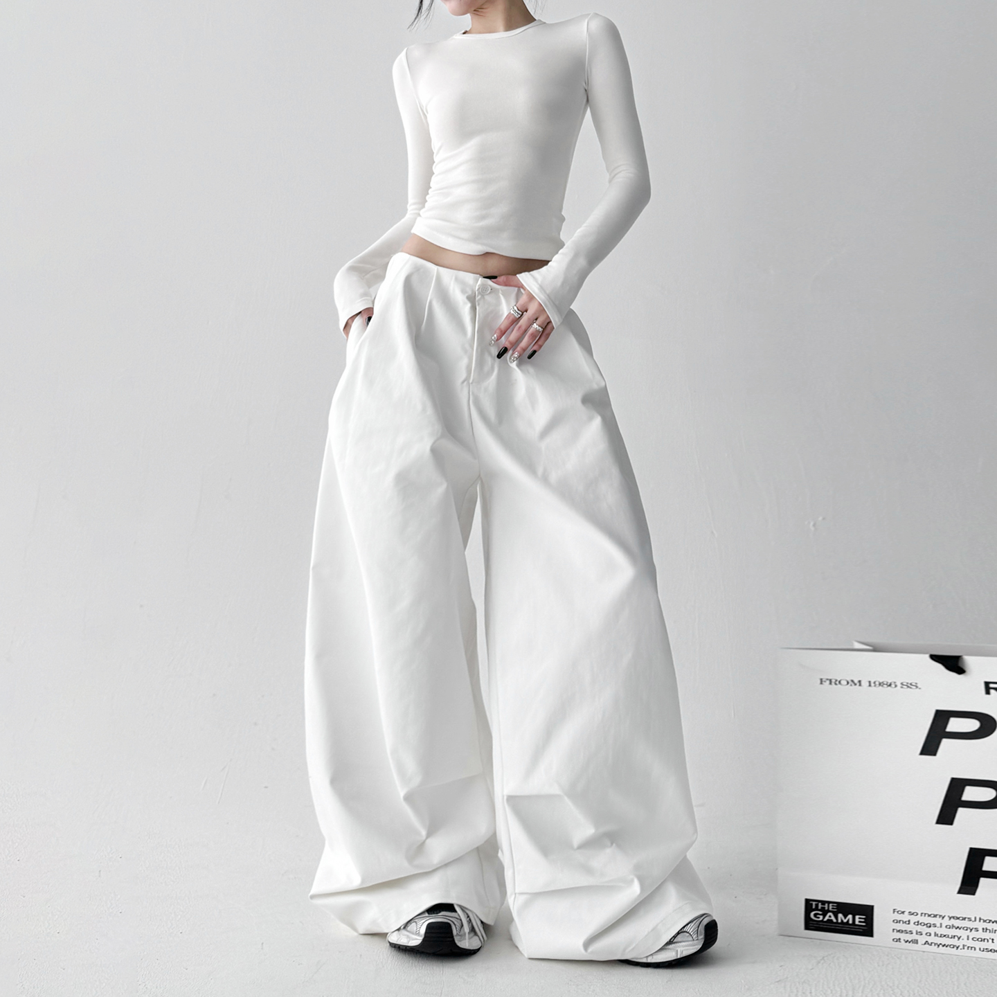 高个子宽松慵懒风休闲阔腿裤 今年流行白色工装 新款 女2025春秋季 裤