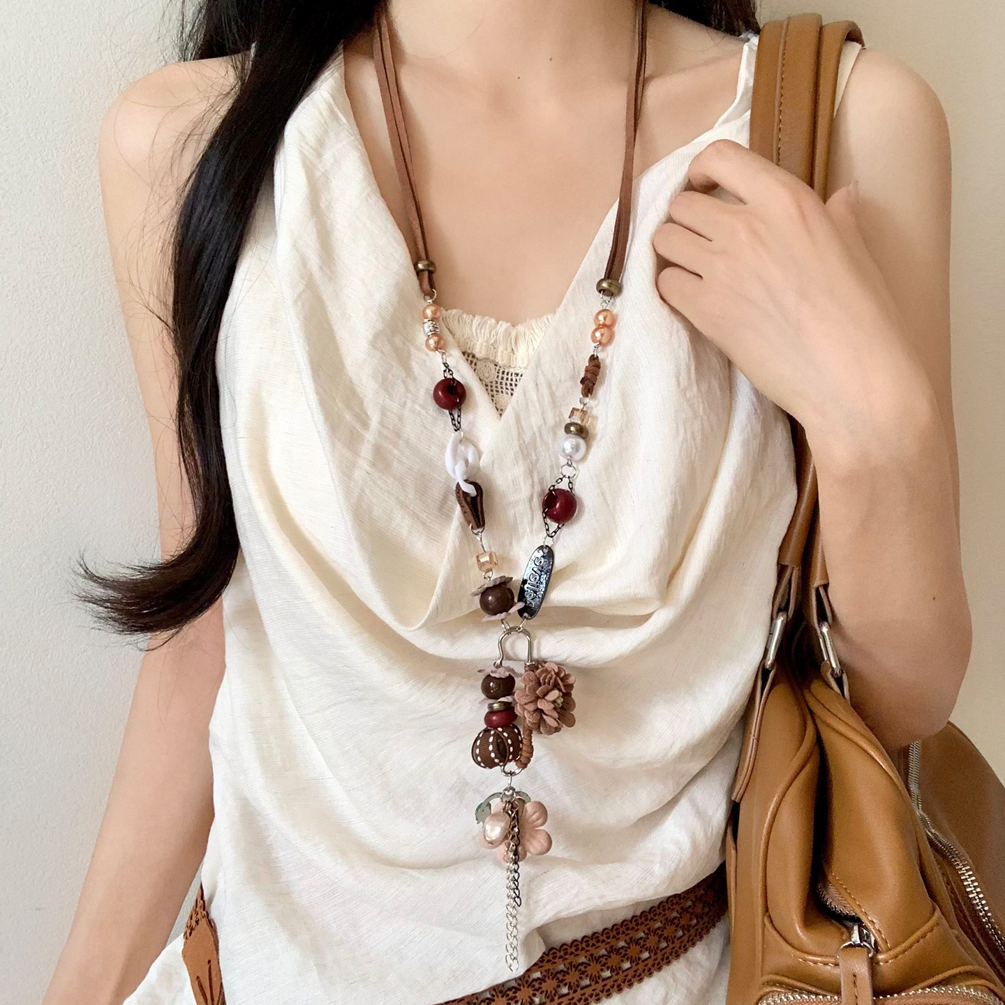 夏日奶蓝色串珠海星项链女高级感叠戴锁骨链颈链海边度假风配饰品