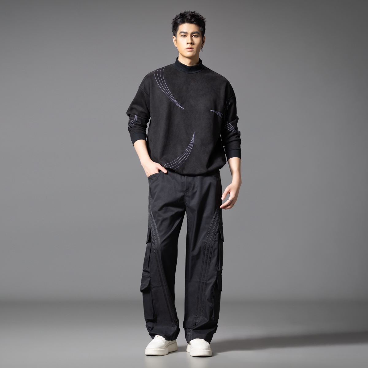 高街复古直筒休闲男生长裤 Kuvine秋冬款 美式 男款 子 宽松阔腿牛仔裤