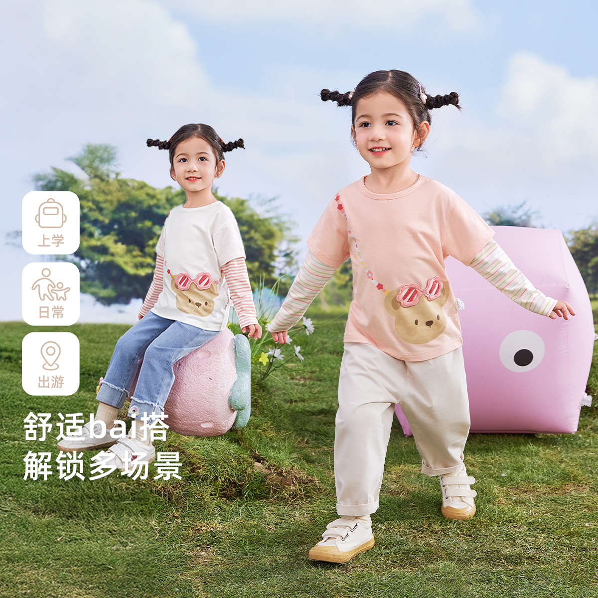7A抗菌 秋装 女童长袖 衣服女孩新款 儿童上衣 t恤假两件6岁宝宝秋季