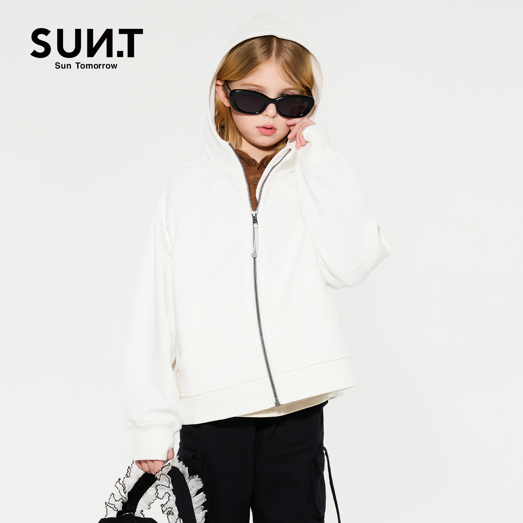 sunt商场同款 女童中大童休闲连帽外套宽松上衣潮 卫衣2025秋冬新款