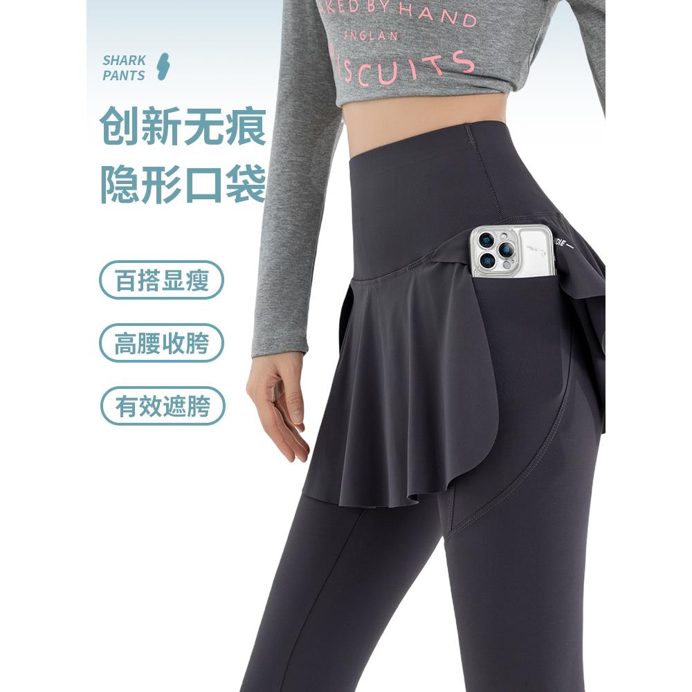 高腰提臀跑步健身打底瑜伽裤 春秋季 女外穿2025新款 假两件鲨鱼裙裤