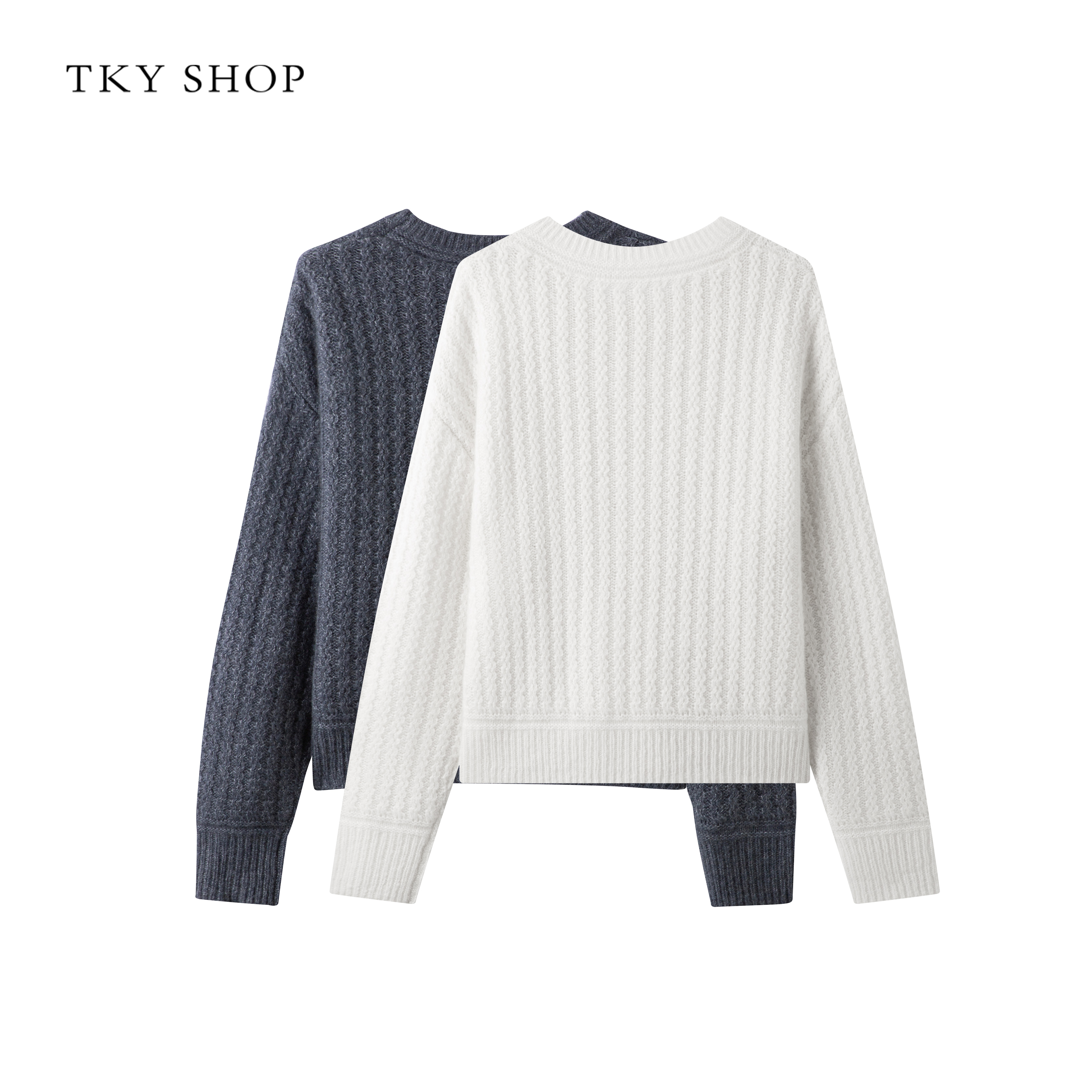 保暖山羊绒打底衫 2025秋新款 宽松内搭上衣 SHOP圆领羊绒毛套衫 TKY