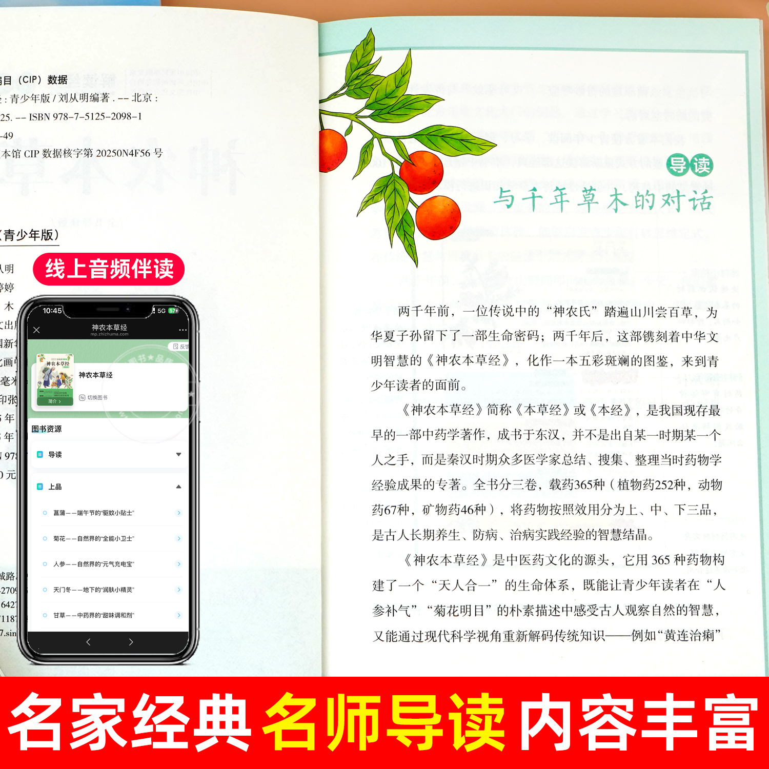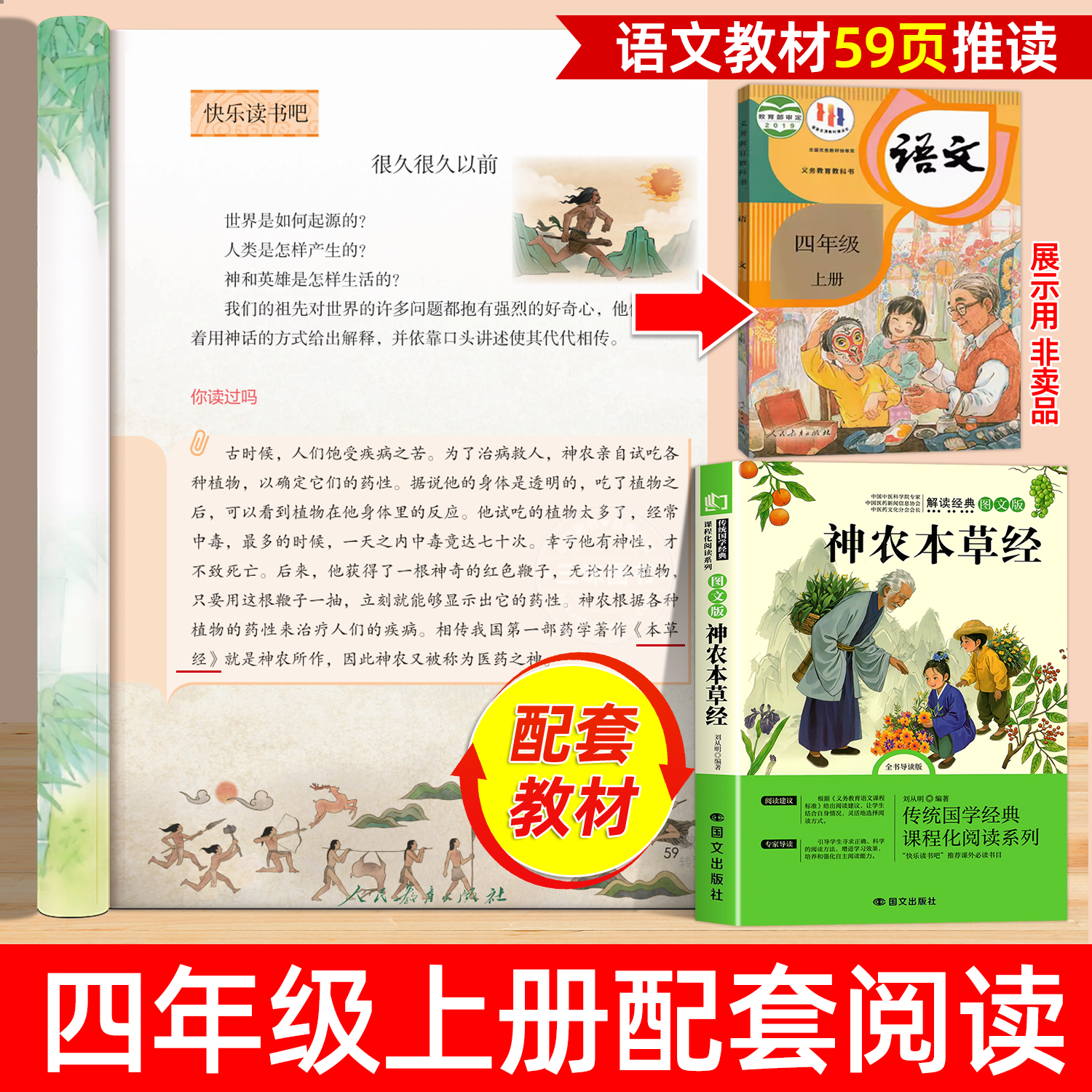 老师快乐读书吧小学4年级课外阅读书籍五六青少年版 神农本草经原著正版 全集推荐 书目彩绘版 图全解 四年级阅读课外书必读上册经典