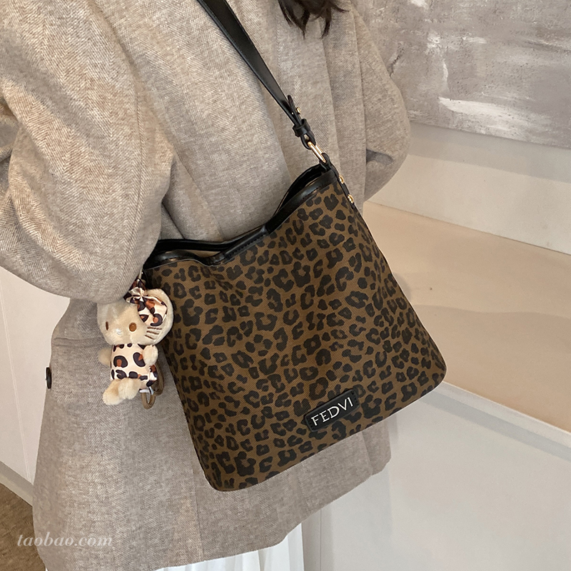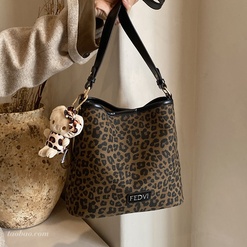 杺薇秋冬季 通勤单肩腋下包外出托特水桶包 复古豹纹包包女2025新款