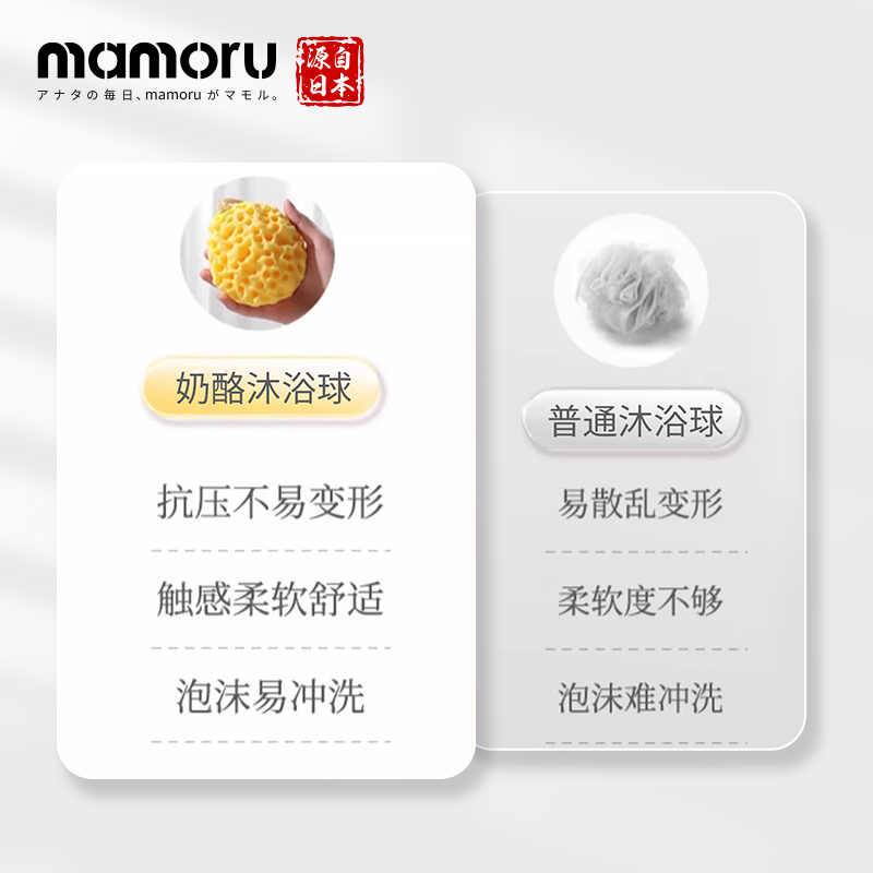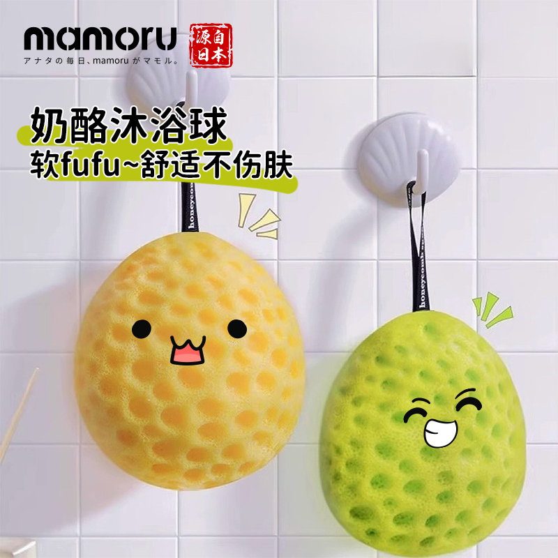 日本mamoru奶酪沐浴球儿童宝宝洗浴球洗澡泡沫海绵超柔软不散花