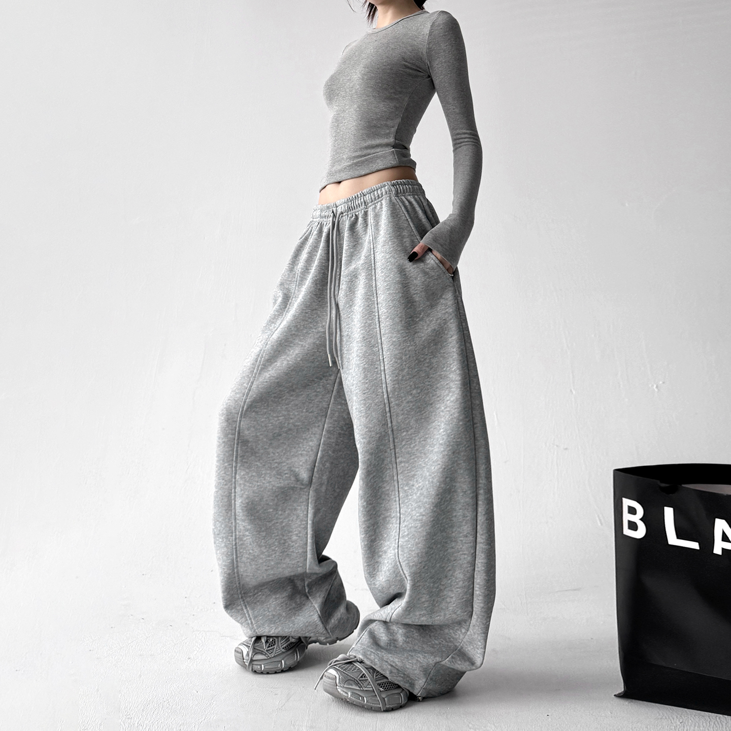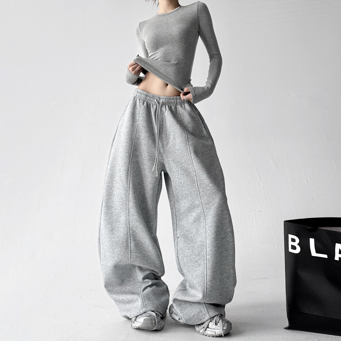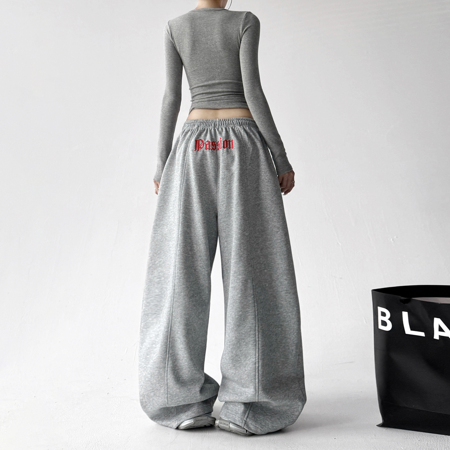 新高个子街舞学院风阔腿休闲裤 女装 女2025春秋季 刺绣运动裤 子 爆款