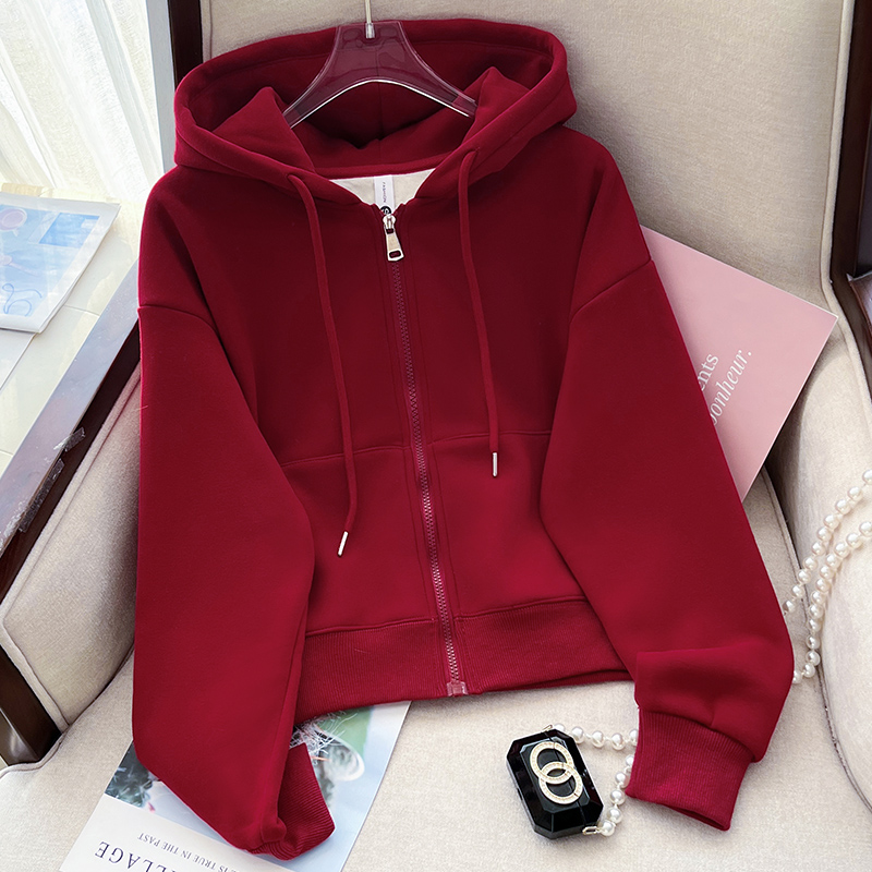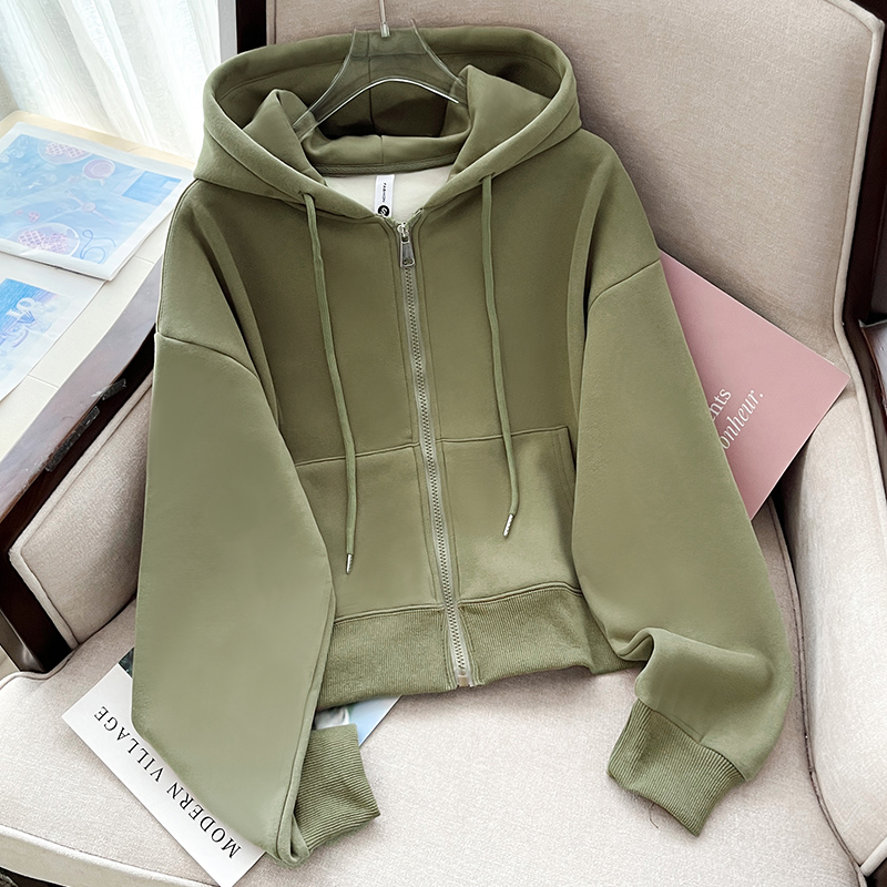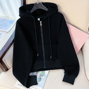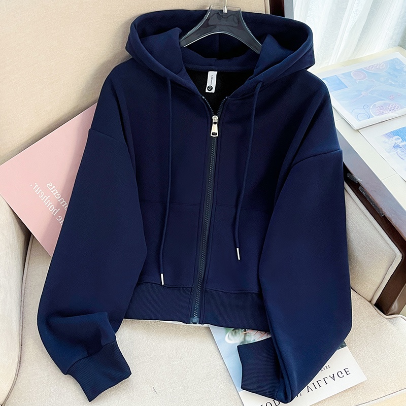 拉链运动连帽上衣开衫 藏蓝色短款 爆款 2025新款 外套 卫衣女春秋薄款