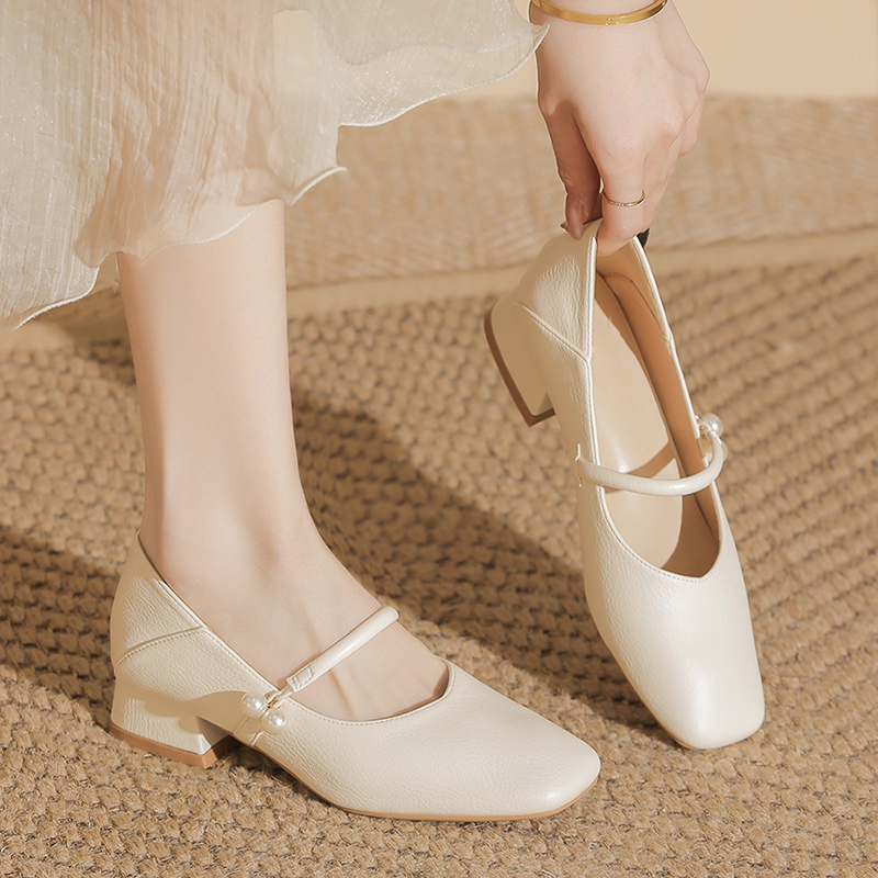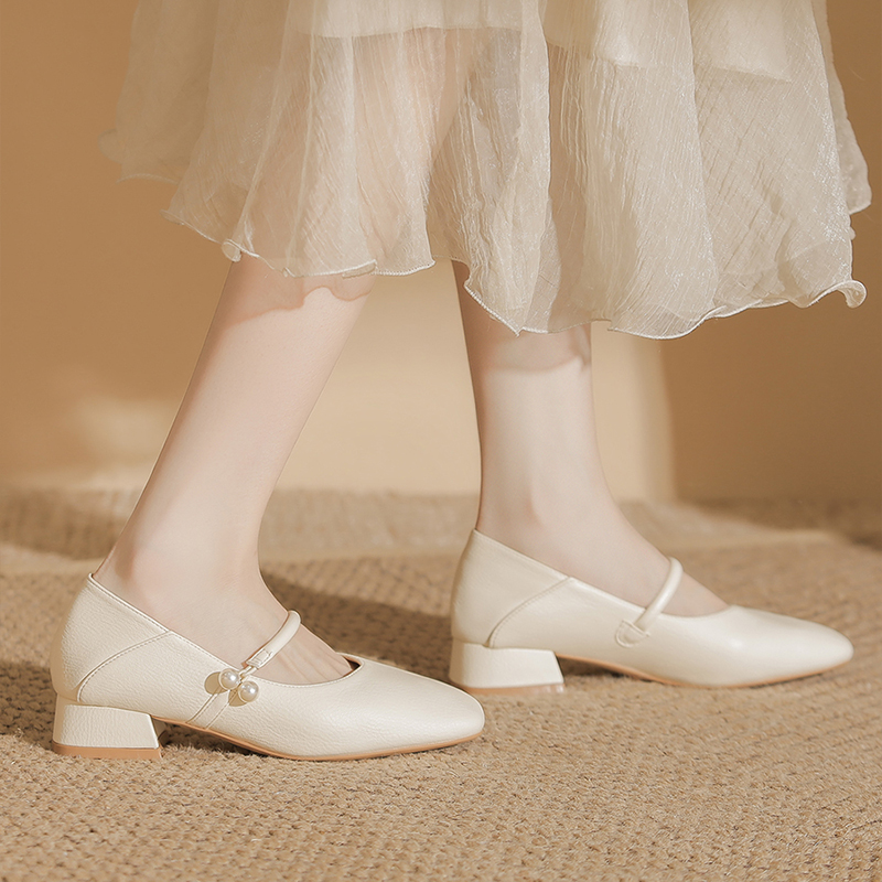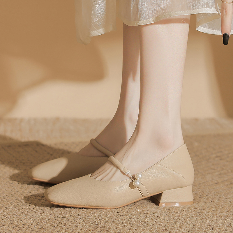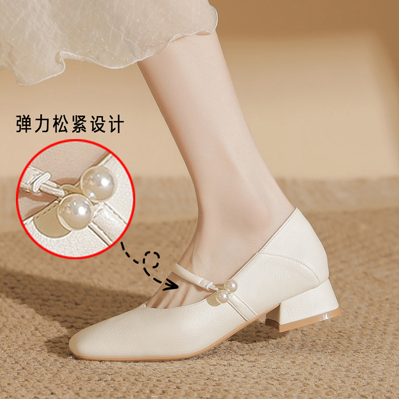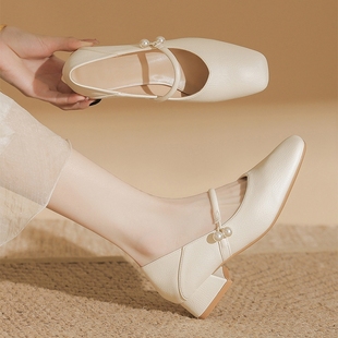 仙女风瓢鞋 秋季 浅口百搭中跟奶奶鞋 大码 真皮单鞋 女鞋 粗跟2025新款