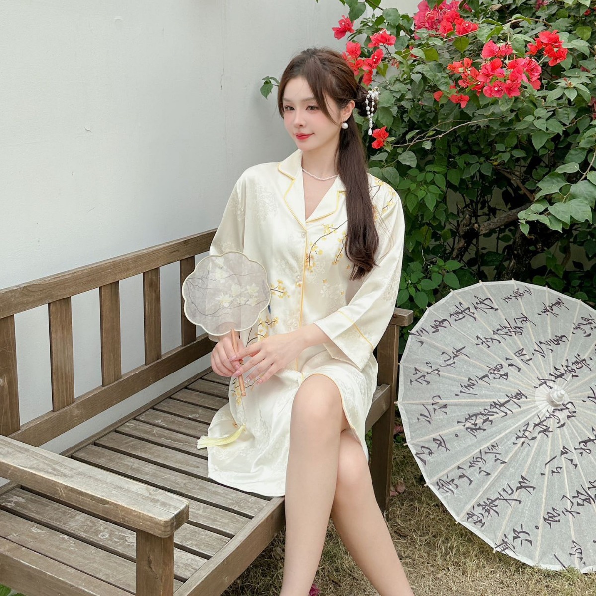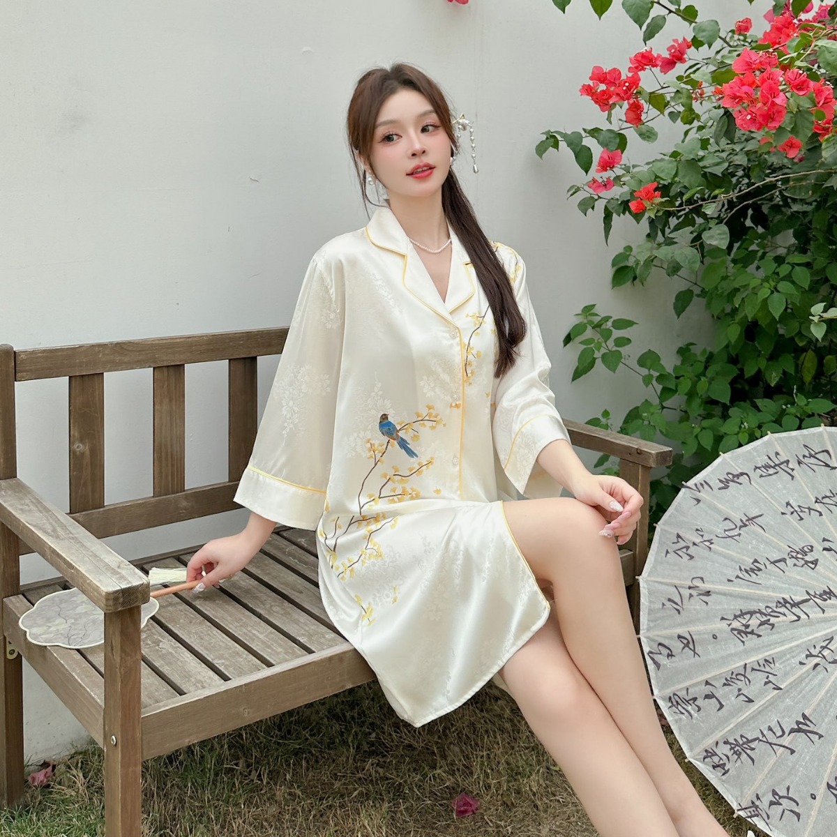 睡裙可外穿 宽松冰丝衬衫 性感睡衣春秋女2025新款 夏纯欲男友风大码