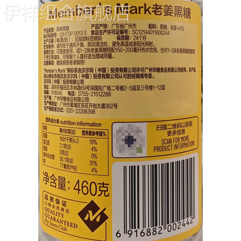 山姆超市老姜黑糖红糖姜茶黑糖块大姨妈姜糖姜汁罐装 独立小袋代购