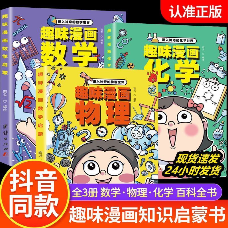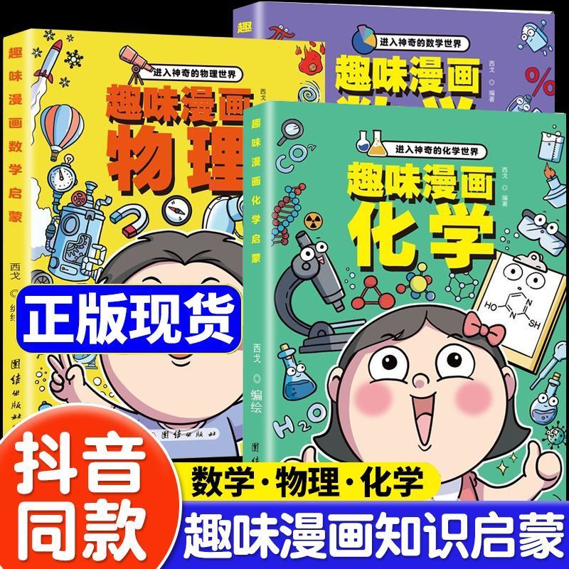 百科书籍科学数理化知识有趣思维全三册 物理化学语文启蒙书世界给孩子 认准正版 趣味漫画物理数学化学全4册进入神奇