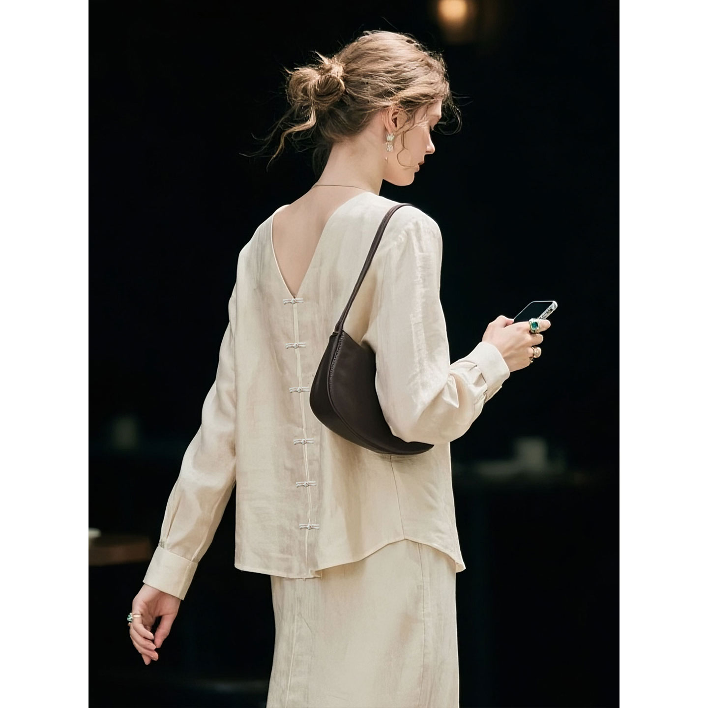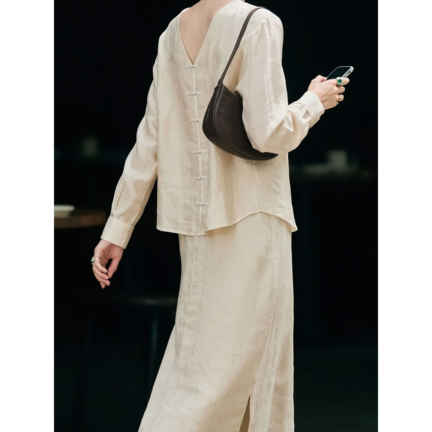 新款 女2025年秋季 高级感盘扣上衣半身裙两件套 国风亚麻套装 新中式
