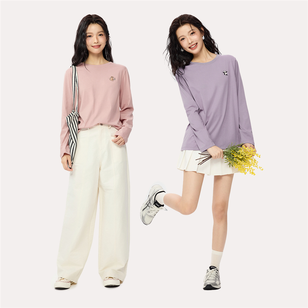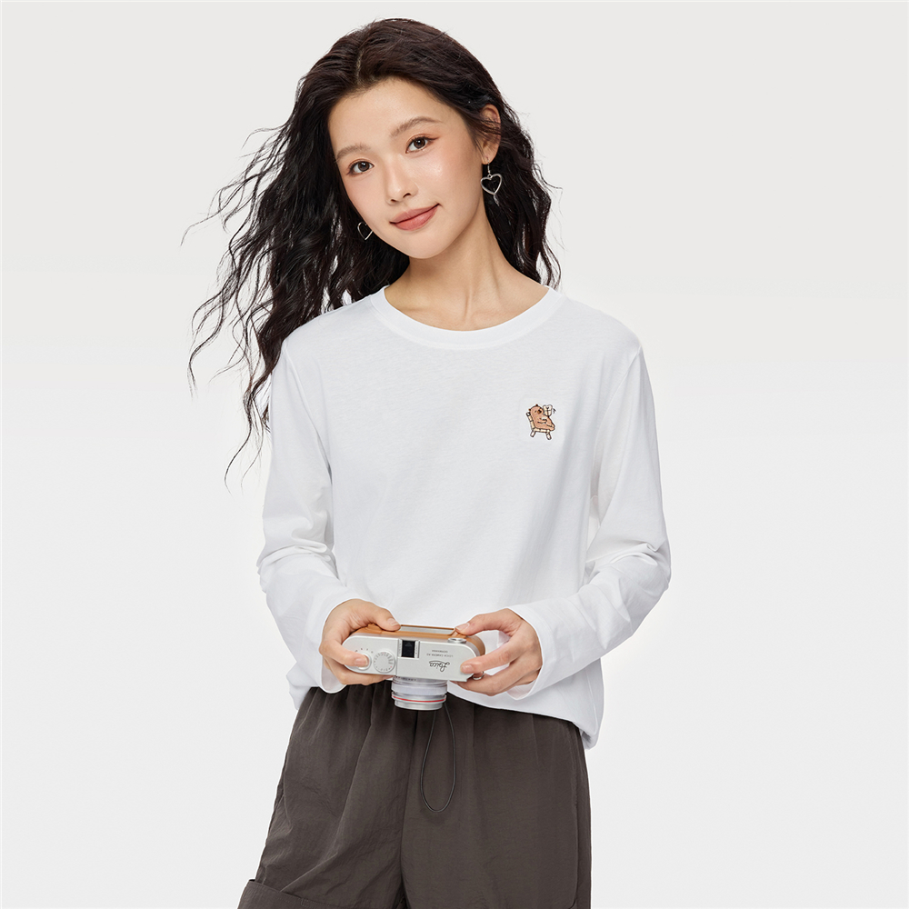 05395784 T恤 佐丹奴T恤女装 纯棉提钱退休主题刺绣圆领针织长袖