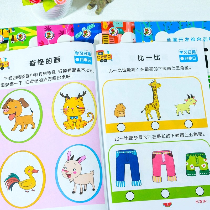 5岁6全脑思维逻辑专注力训练两岁宝宝书籍启蒙早教书绘本中班大班幼儿园数学识字益智游戏连线书本大脑 儿童左右脑智力开发1