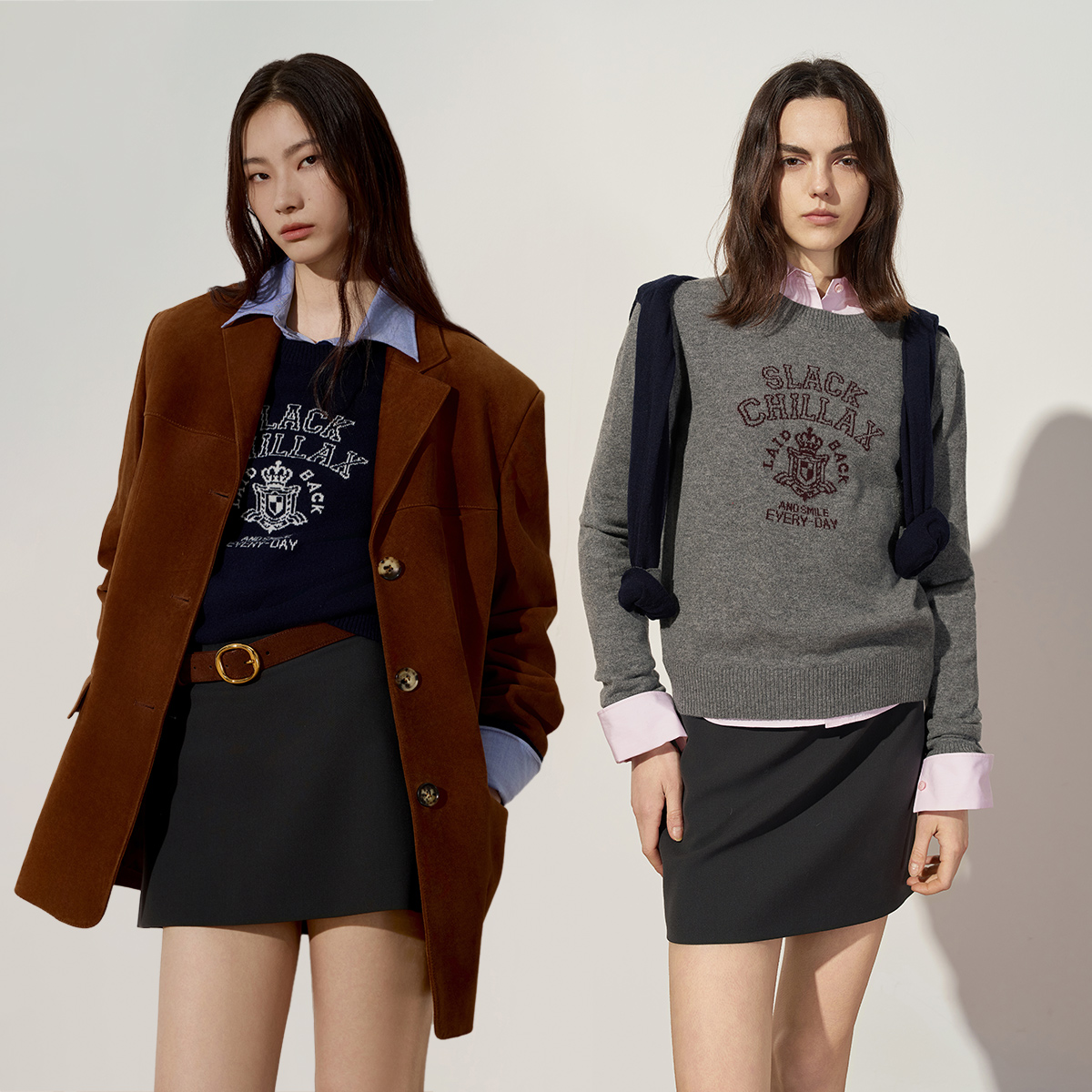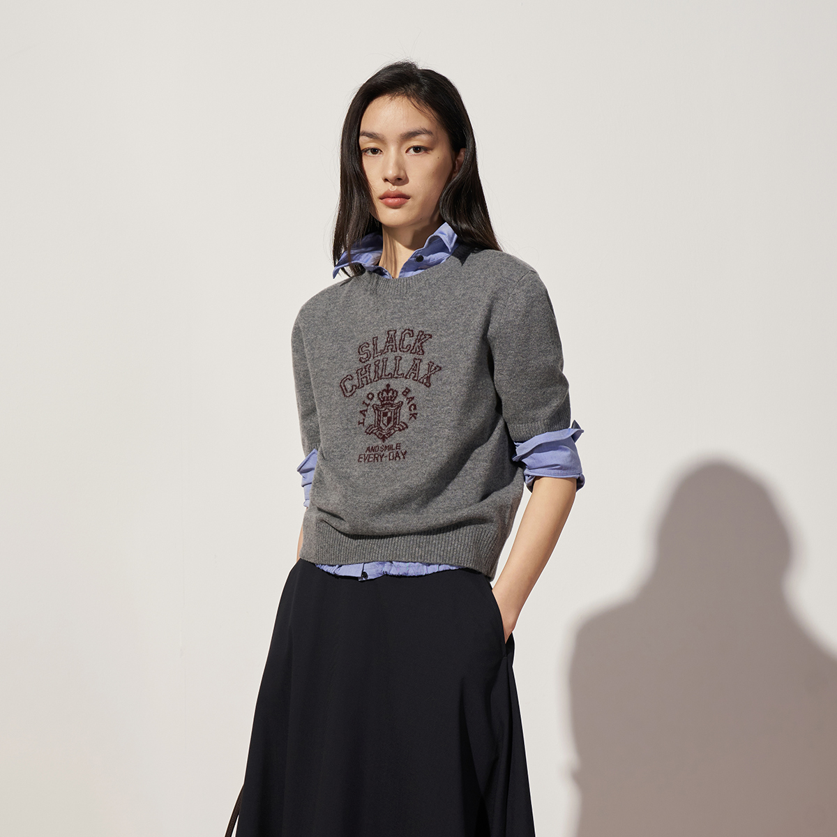 OCHIRLY欧时力澳大利亚羊毛圆领提花短袖 毛衣女针织2025秋冬新品