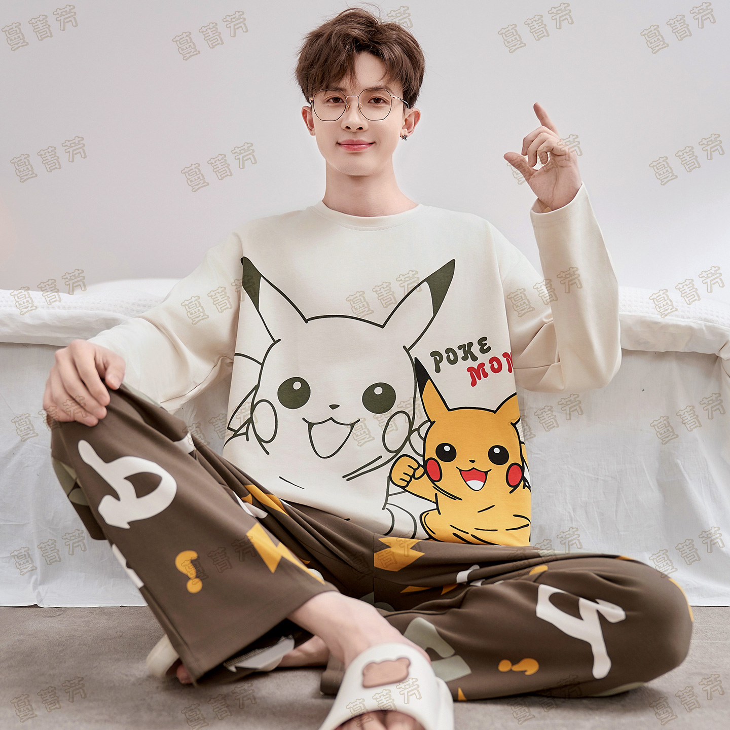 春秋季 套装 纯棉长袖 休闲大码 夏天新可外穿 家居服薄款 雅鹿睡衣男款