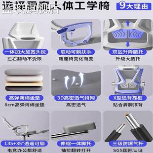 椅家用人体工学 椅办公座 椅学生电竞 椅子靠背 椅摆件饰品 椅卧室 蓝蛟舒服久坐电脑