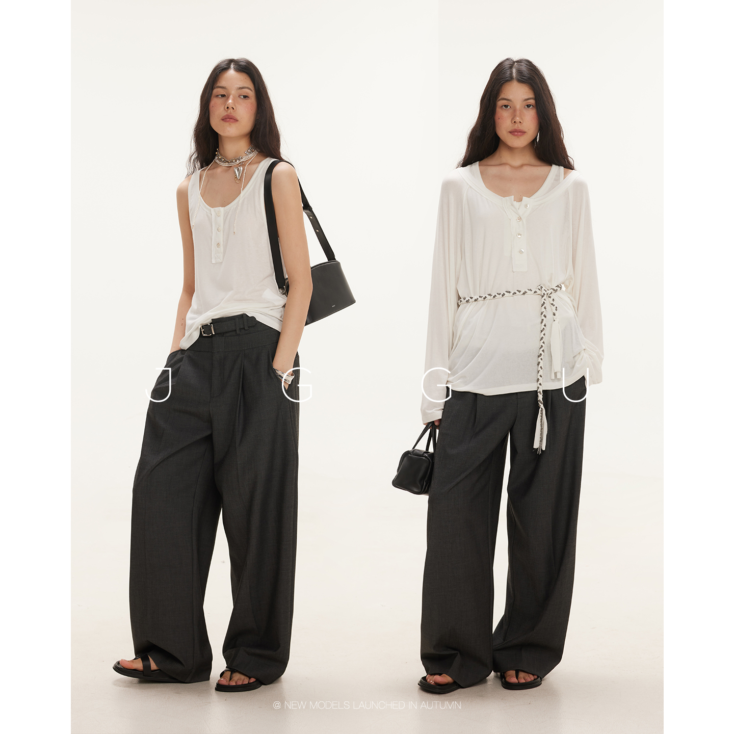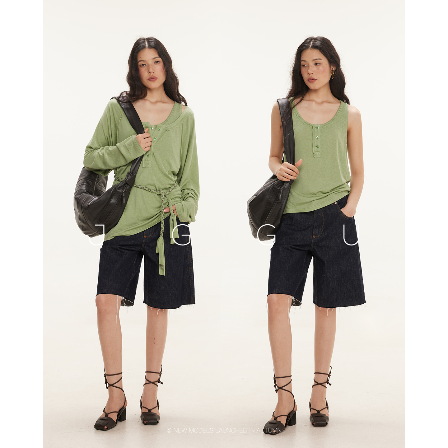 套装 晶咕黑标JGGU T恤大码 纯色莱赛尔背心+腰带 女秋 西部幻调